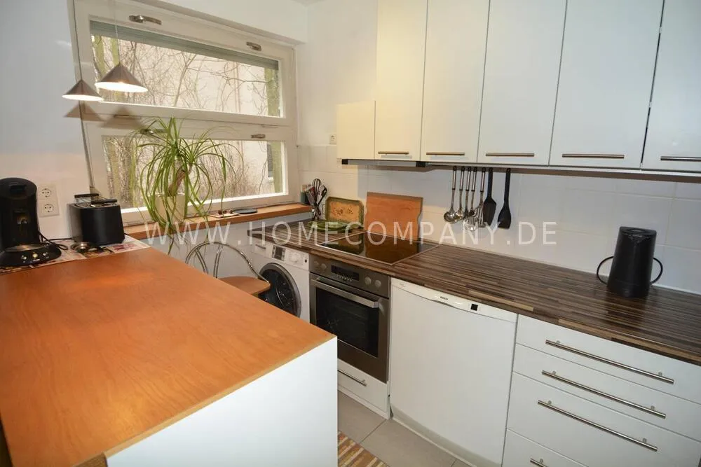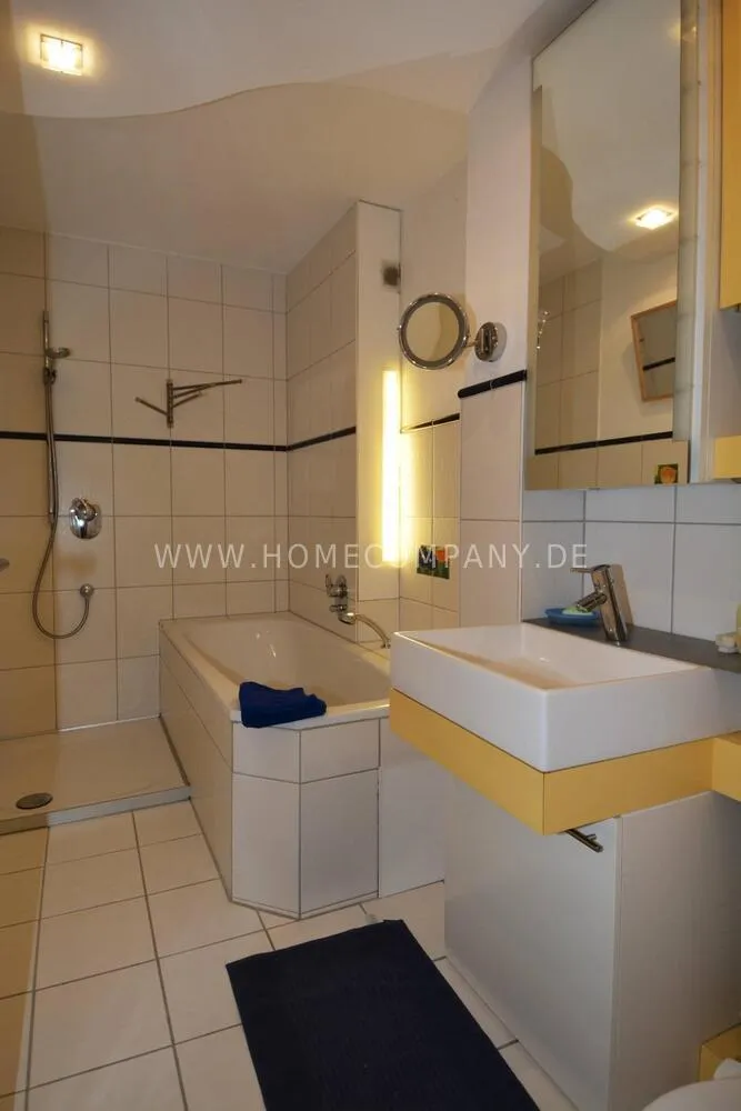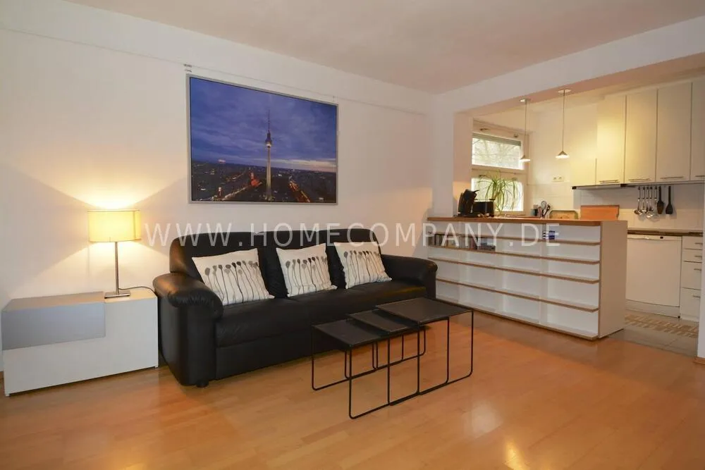The apartment has a spacious living room with dining area and an open kittchen with all cooking appliances. The bedroom has a double bed and a large closet. The tiled bathroom has a bath and an extra shower. The apartment has a parquet floor, the washing machine is in the kitchen. There is a DSL Internet connection with Wi-Fi available. Very representative location in the Western part of Berlin.