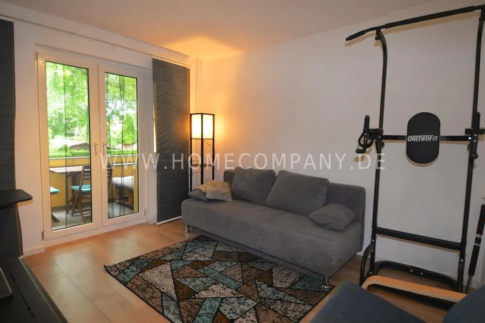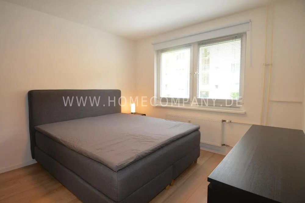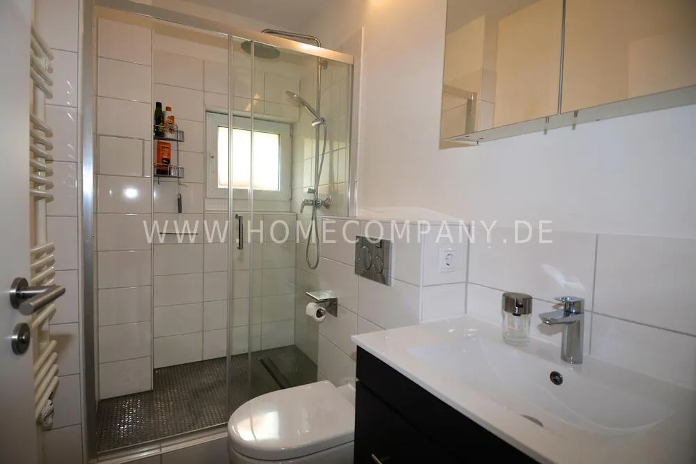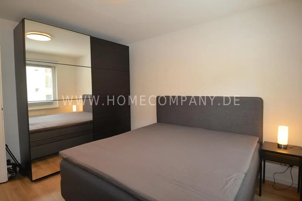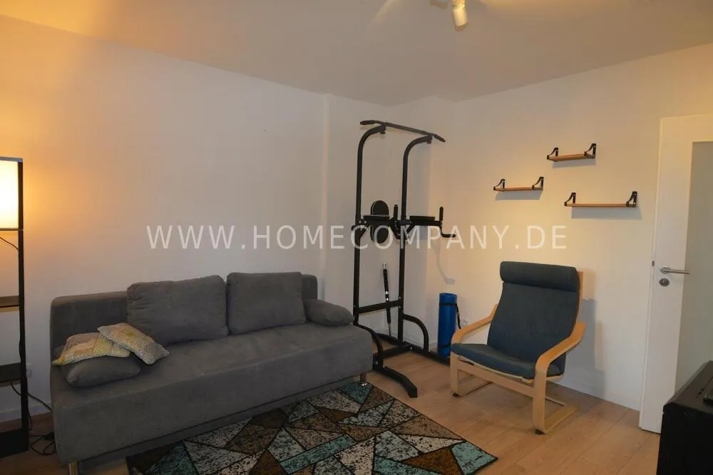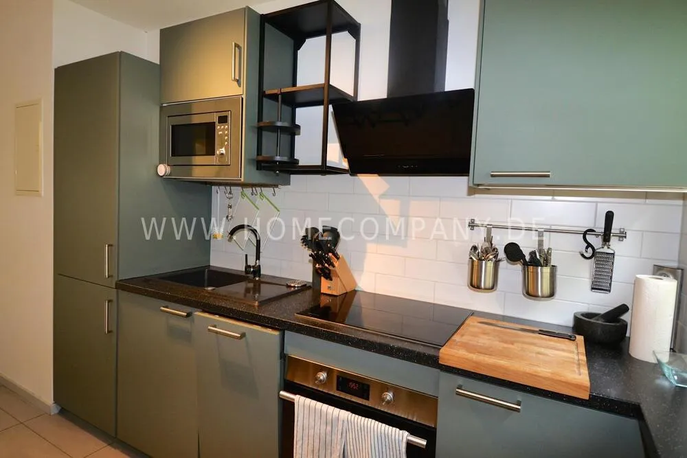 fully equipped kitchen; Living room with large desk and smart TV, bedroom with large double bed, closet and chest of drawers, bathroom with shower