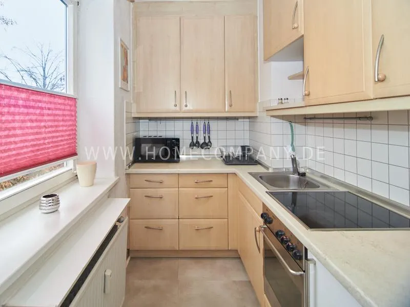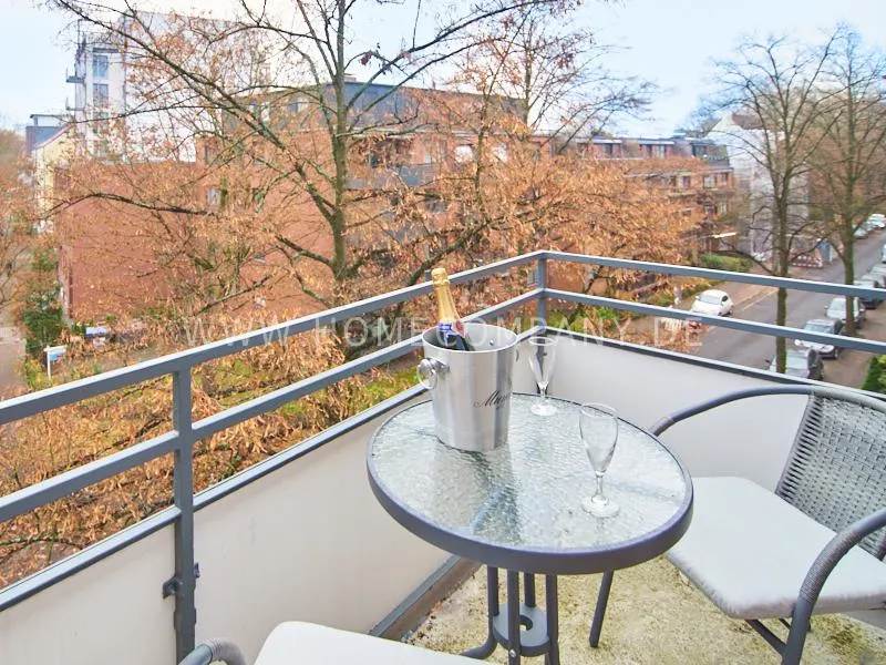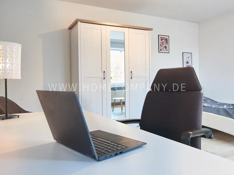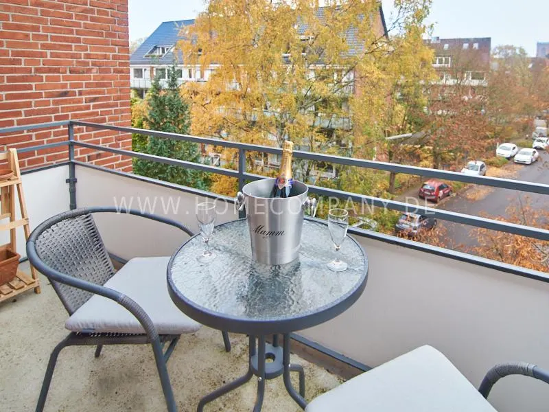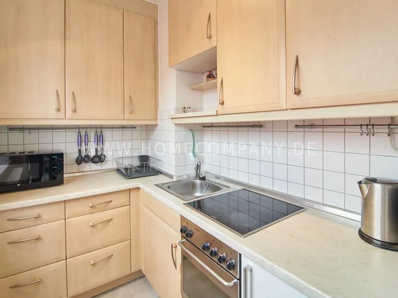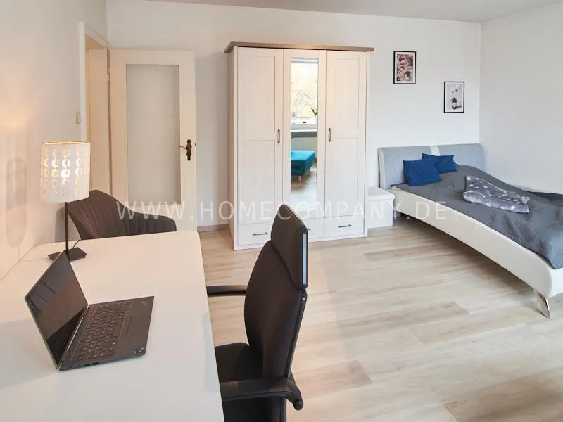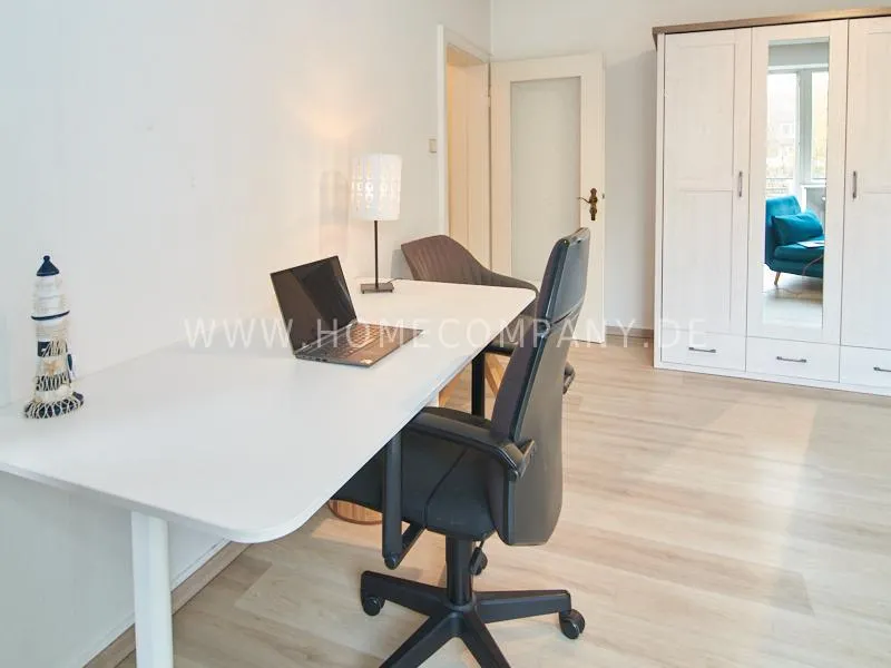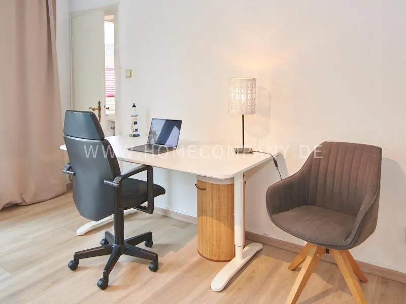 Bright and well-designed one-room apartment on the 3rd floor of a refurbished multi-family building in Hamburg-Barmbek, located in a quiet residential street in the popular Komponistenviertel. The living area features a comfortable armchair, a TV section and a dining table that can also be used as a workspace if needed. From here you have access to the balcony, which faces the green inner courtyard. In the sleeping area there is a 1.40 m wide bed and a spacious wardrobe. The separate kitchen is equipped with a modern fitted kitchen including stove, oven, refrigerator and dishwasher. The bathroom comes with a bathtub. The apartment has high-quality design vinyl flooring. Further amenities include internet access, cable TV and a washing machine.