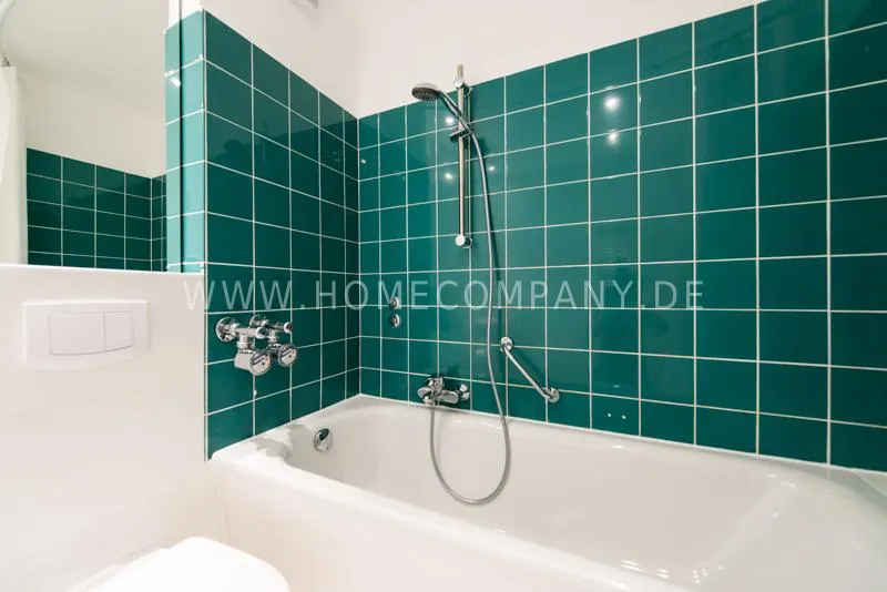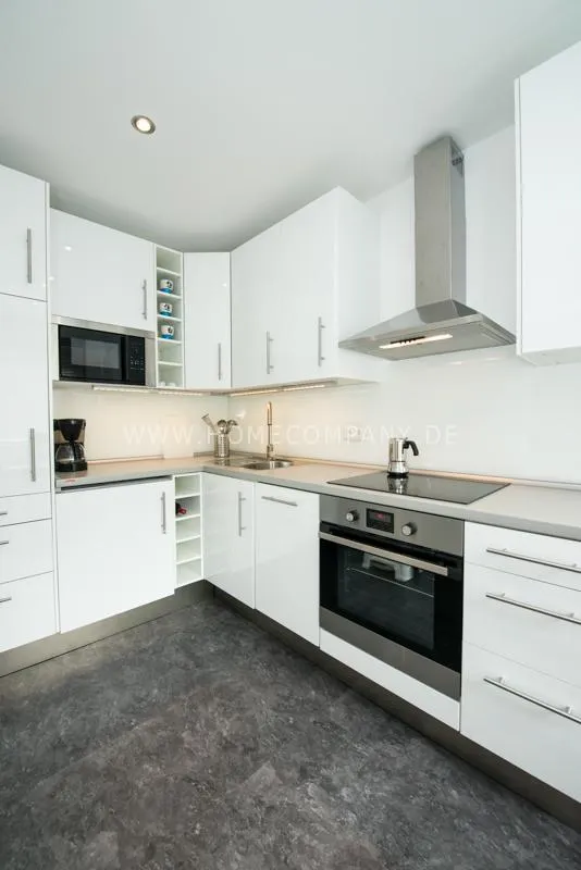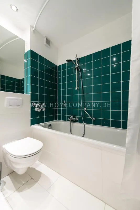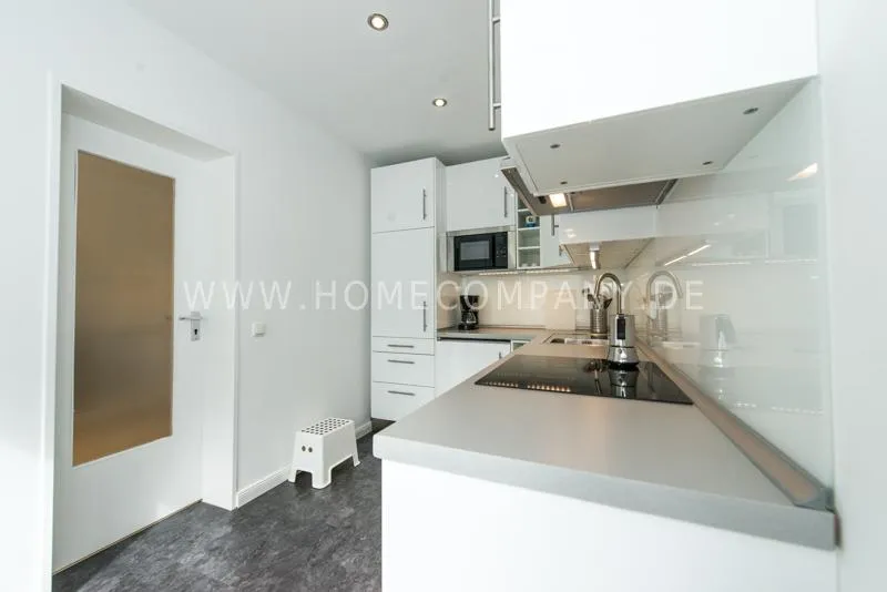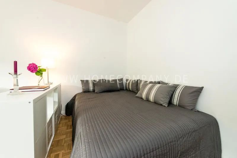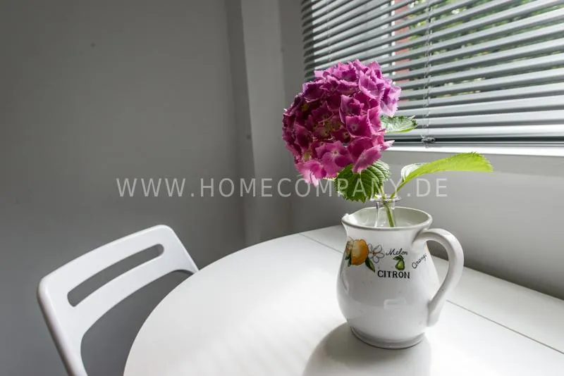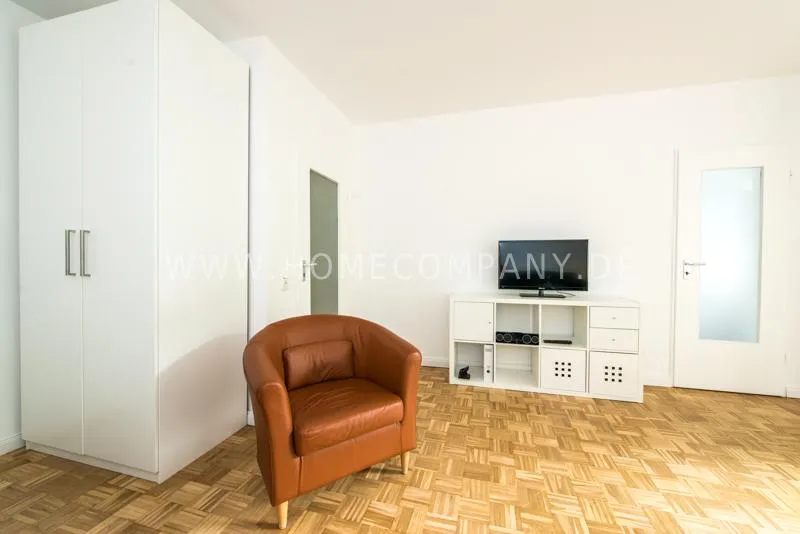 Modernly furnished and generously designed 46 sqm one-room apartment with a large south-facing balcony. The furnishings are bright and functional: white fitted kitchen with dishwasher, microwave and dining area, parquet flooring, washing machine, full bathroom as well as internet connection and a Television. The apartment is located on the 2nd floor and is easily accessible by elevator.