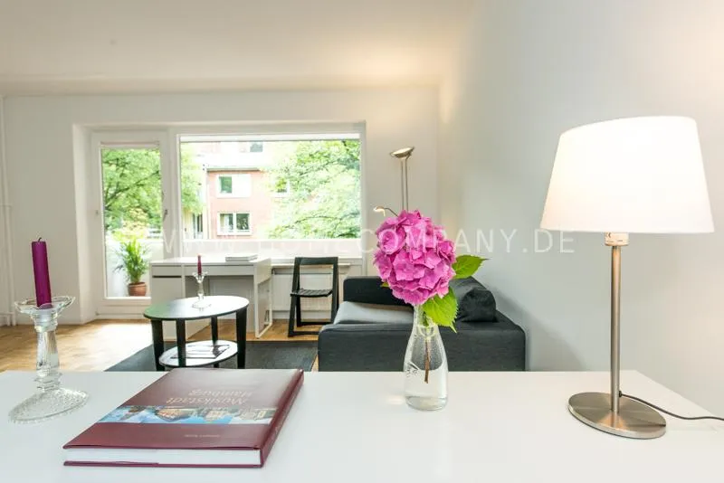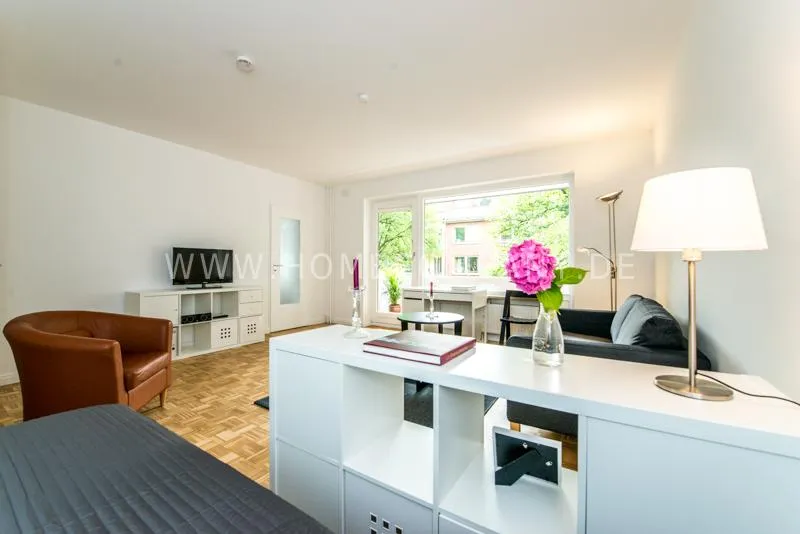The location combines peace and centrality: only 300 m to various bus stops, just a few minutes to the popular Goldbekufer with its weekly market and to the lively Mühlenkamp with numerous restaurants, cafés and shopping facilities. The nearby Goldbek Canal, the Alster and the Stadtpark offer a wide range of leisure activities, making the apartment particularly attractive for business professionals.