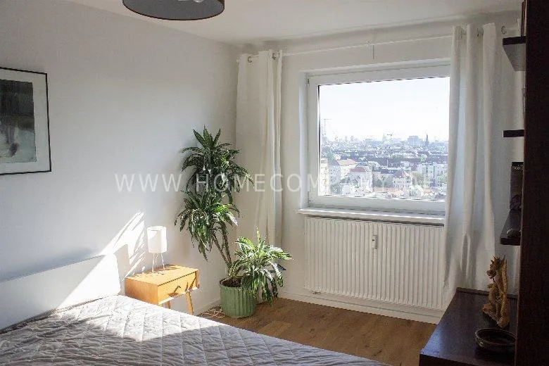 The 3-room apartment offers a stunning 360-degree view of Berlin. You can enjoy beautiful sunsets and sunrises from inside the apartment and on the balcony. The apartment is very bright and recently renovated.