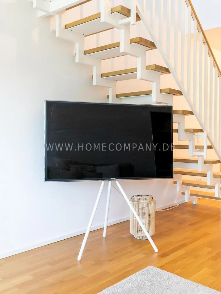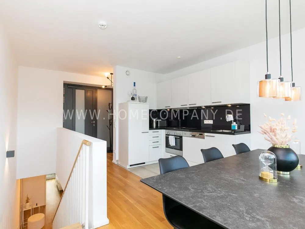 The modern maisonette flat is located in the centrally located Rotherbaum/ Grindel district. On the upper level is the spacious living and dining area with an open kitchen. Large floor-to-ceiling windows ensure plenty of daylight in the apartment and a wide view over Hamburg, in the evening you can see the illuminated television tower. An open staircase leads to the lower level of the flat. The bedroom is furnished with a 1.80 m wide double bed. The furnishings are modern and kept in subtle, harmonious colors. The high-quality furnishing with a few designer pieces conveys an exclusive, homely overall impression.The flat is equipped with underfloor heating. Two balconies offer plenty of space to relax after work and on weekends. The high-quality technical equipment completes the picture. A Bose Bluetoth music box is available. The flat screen TV can be used via Google Chromecast for various services such as Netflix etc. with their own accounts. Some channels can also be received without your own access. The Internet is set up via fiber optics with 1000 MBit. A Miele dryer is available.