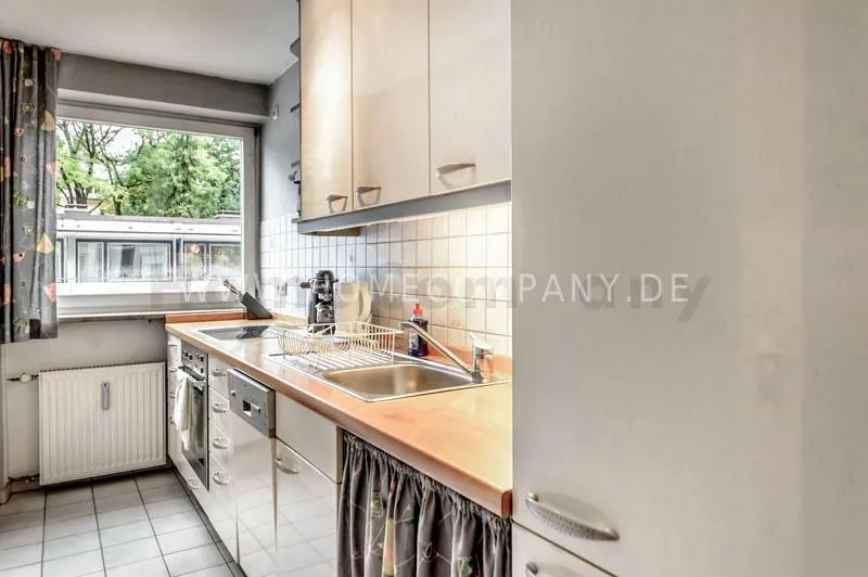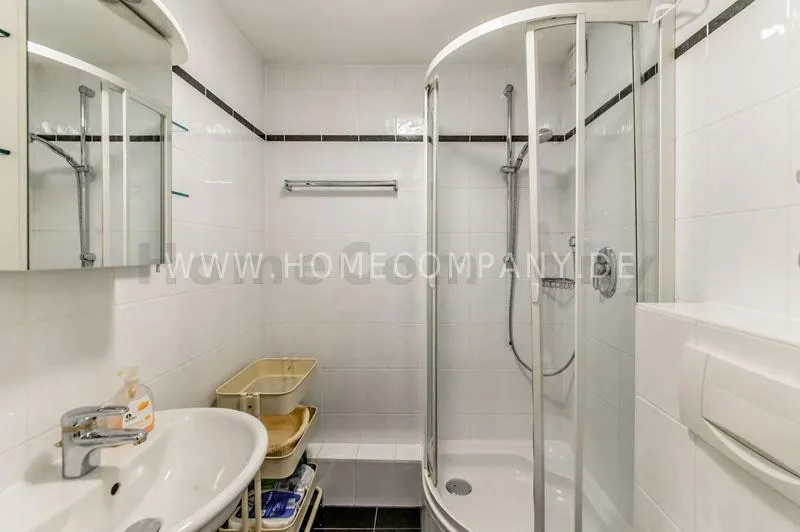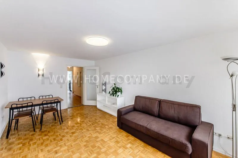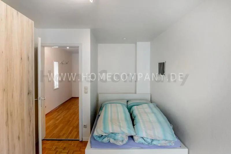 Pleasant and quiet 2-room flat in a cultivated residential area. The flat is refurbished with parquet floor (oak); bright kitchen with electric cooker, oven and glass-ceramic cooktop, light-coloured bathroom with round shower, balcony facing to the south (2 m◊). A duplex underground parking place is included. Additional charges for a second person.