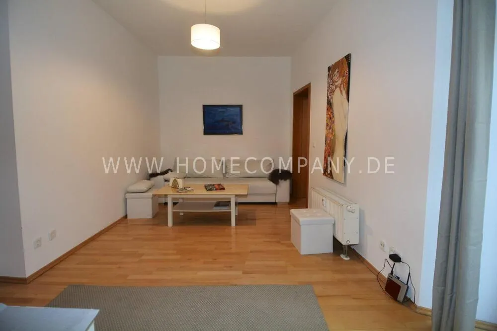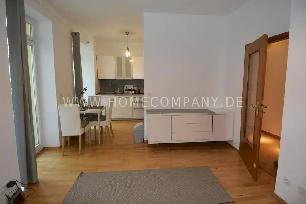 It's in a beautiful historic house, in the backer part with a balcony. You enter the flat through a wide corridor and belong to the living room.