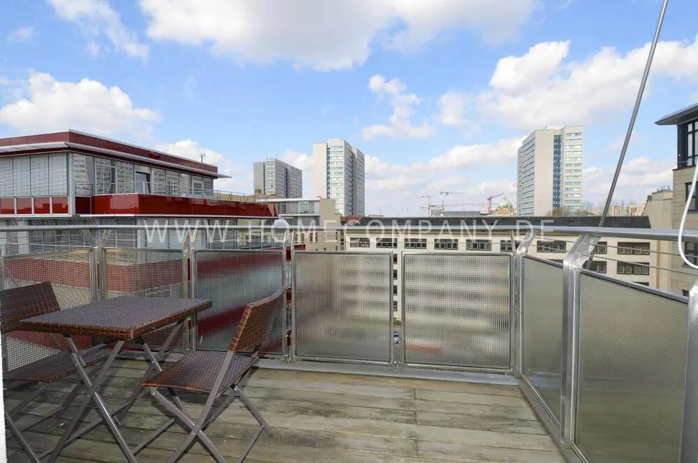 Renovated, fully furnished top floor apartment with a lovely balcony, located very centrally in Berlin, Mitte. The 1-bedroom property comprises laminate floors, modern furnishings, a good- sized bedroom with a double bed, a modern and fully equipped kitchen and a bathroom with a shower. Lease of parking lot possible.