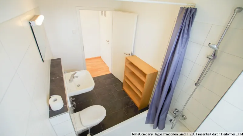 Bath tub, WC, washbasin, towel holder, hanging book shelf,