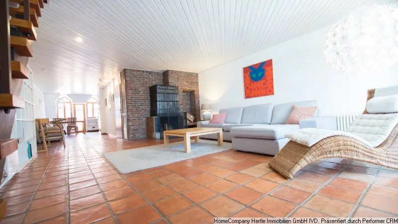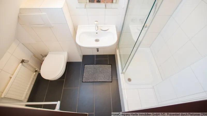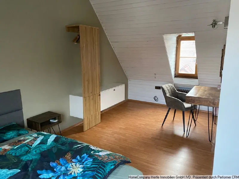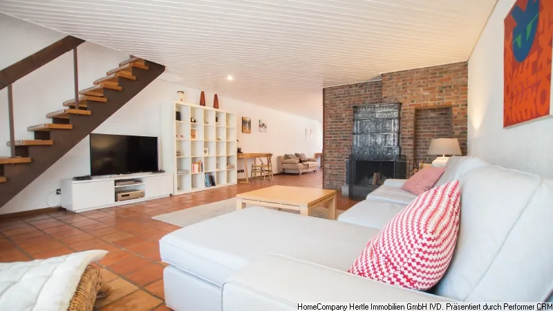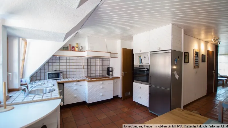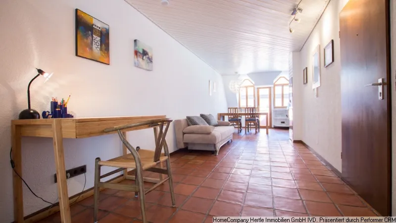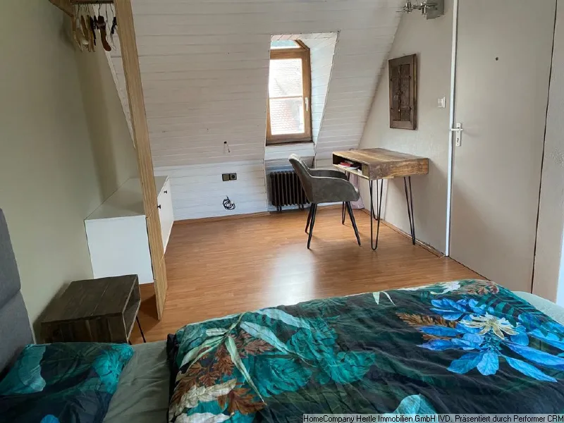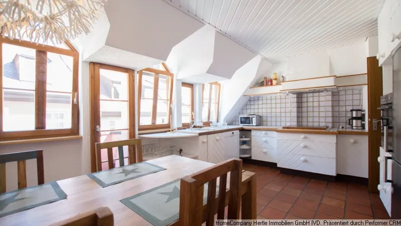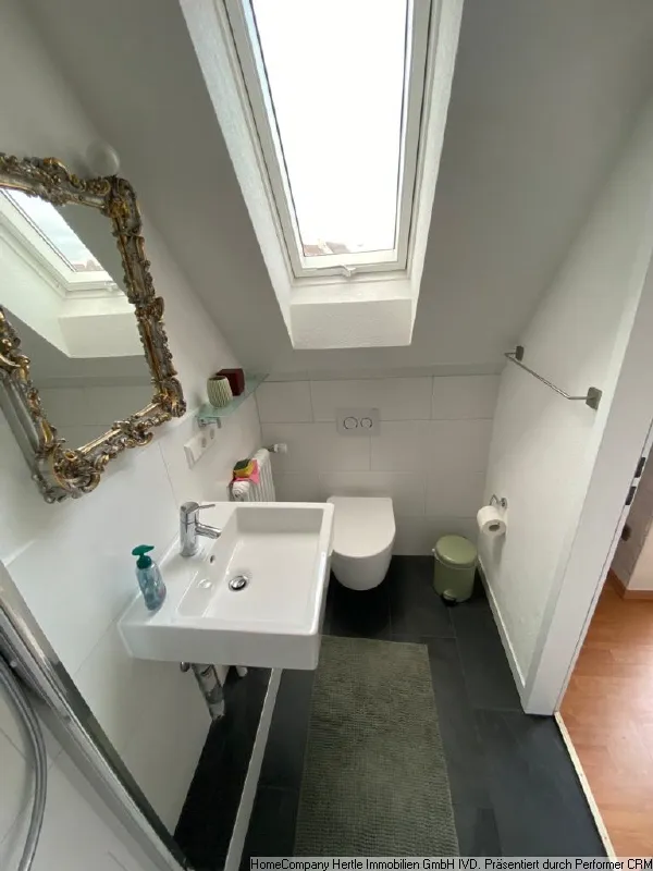 The upper floor (freshly renovated!) features new flooring in the bedroom, along with a large freestanding bathtub in a dormer room overlooking the cathedral, a new/modern bathroom with a walk-in shower and toilet, as well as a guest room, home office, or children’s room with its own WC and additional access to the stairwell—and thus just a few steps away from the living room.