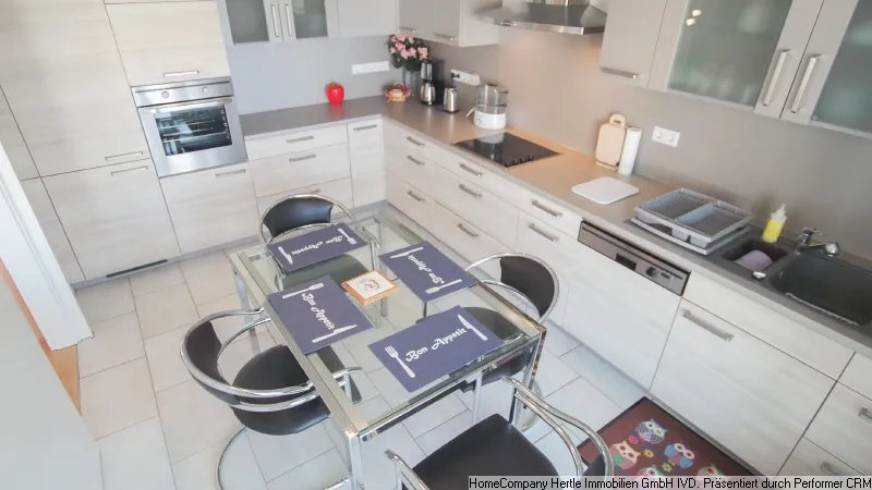 Fitted kitchen, 4-zone ceramic hob, steamer, microwave/oven/convection oven,