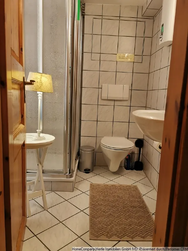 Shower, WC, washing machine connection, wall mirror, towels