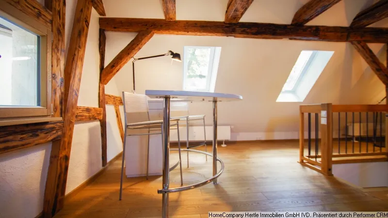 Over a staircase in the hallway to the bedroom as well as guest room, bathroom with shower/WC. The spiral staircase in the hallway leads to the attic with work area, relaxation corner as well as washing area. An outdoor seating area in front of the house.Parking space in front of the house is included in the rent.