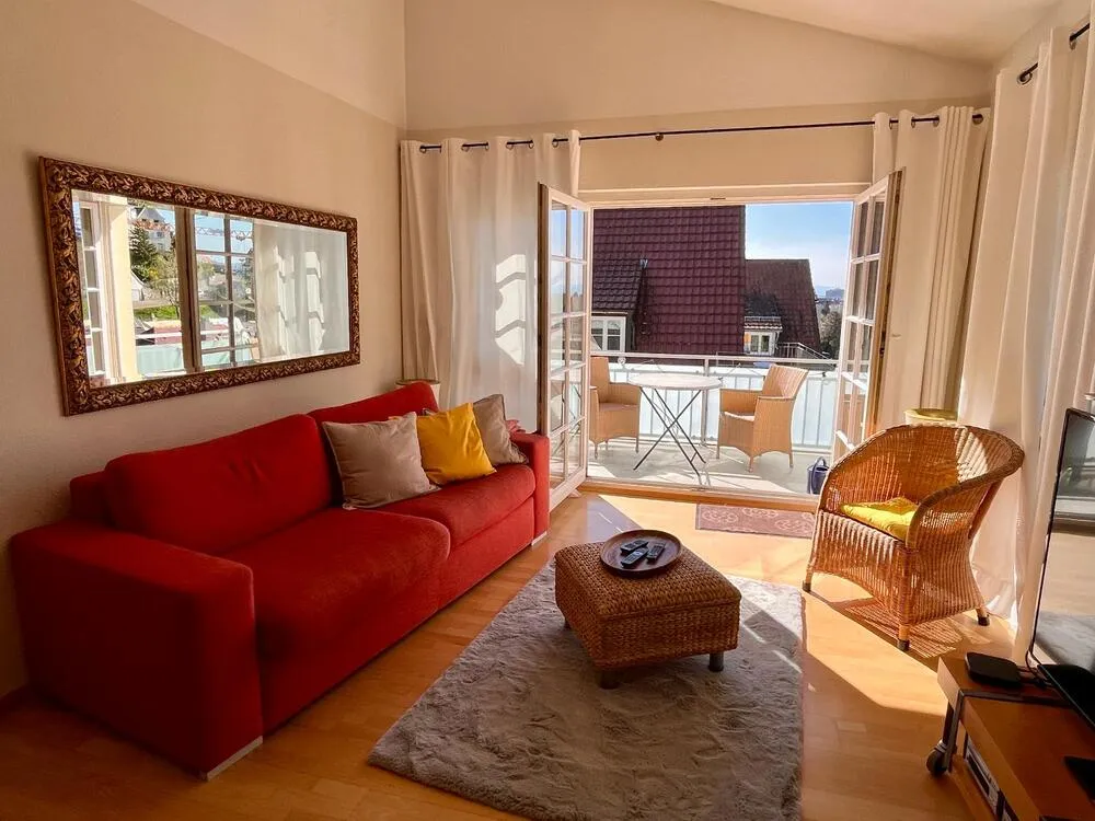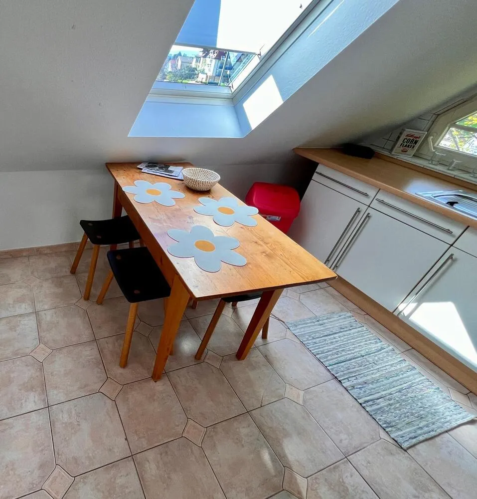 Friendly furnished maisonette with 2 balconies and a wonderful view of the Vosges mountains in a great location in Herdern.