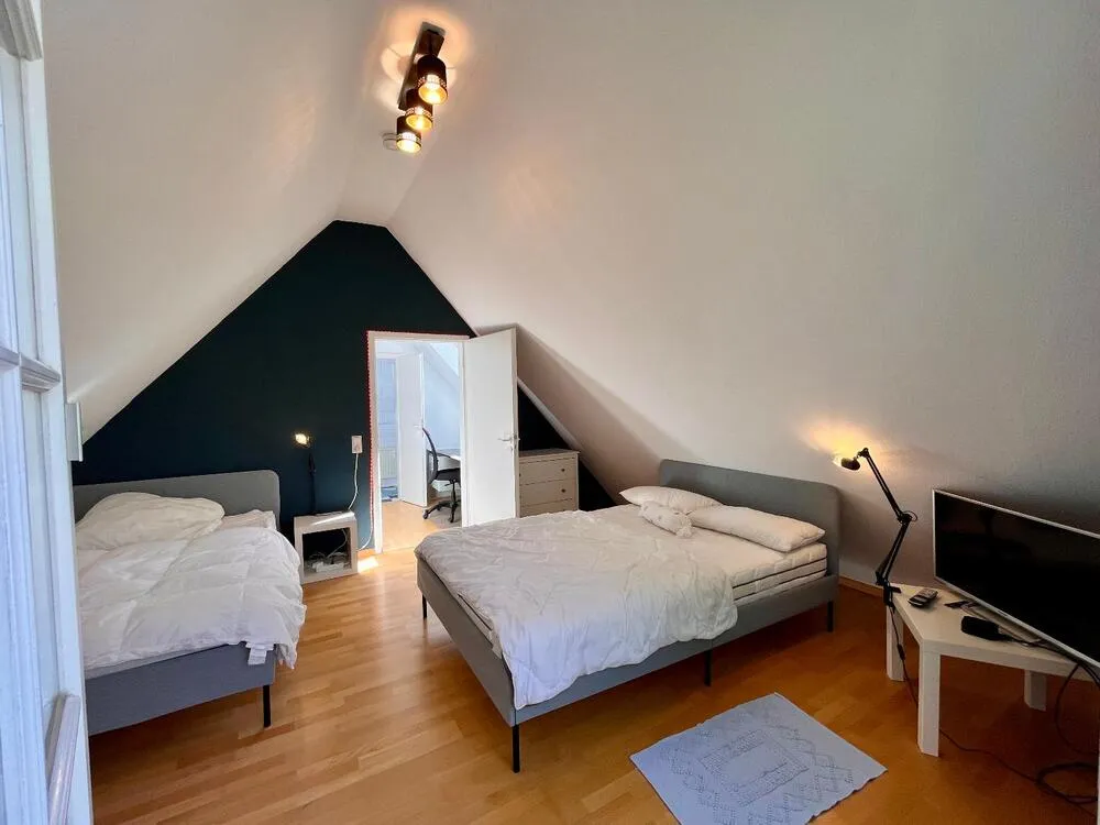 2 separate beds (140x200), 2 sideboards, 2 small bedside tables with small lamp, TV
