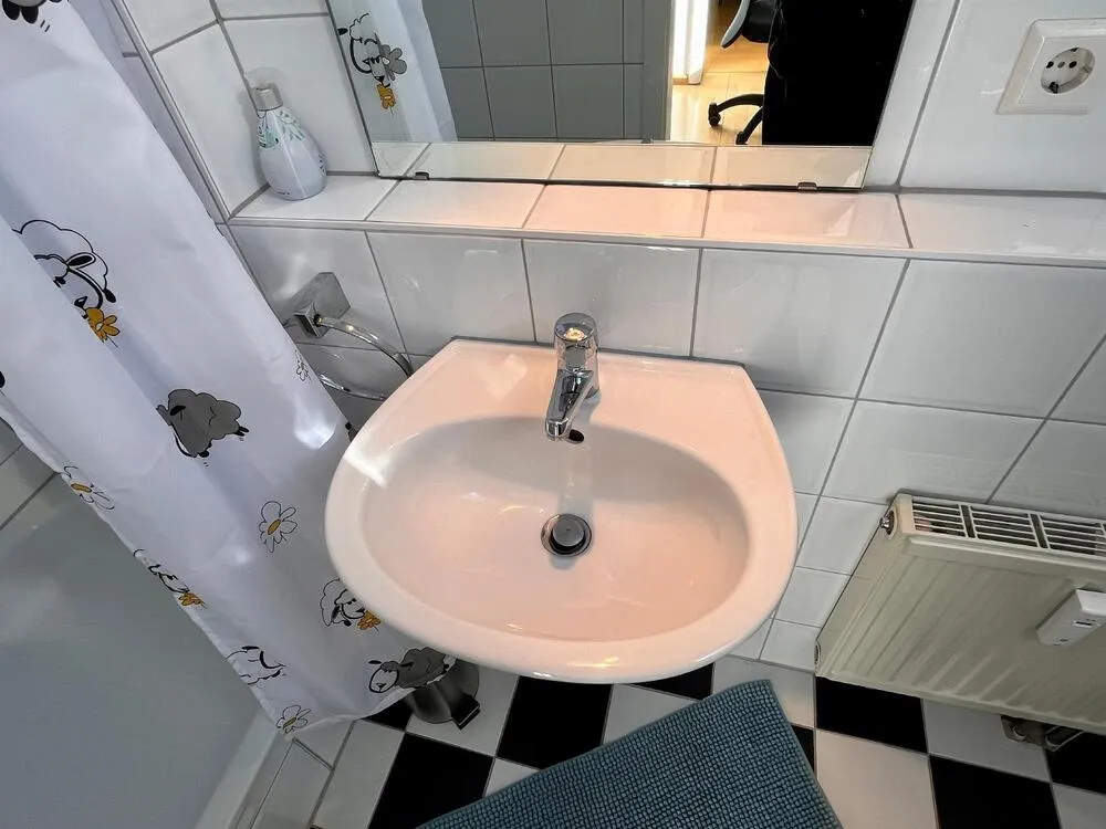 Shower, bathtub, 2 washbasins, WC, washer-dryer (Siemens)