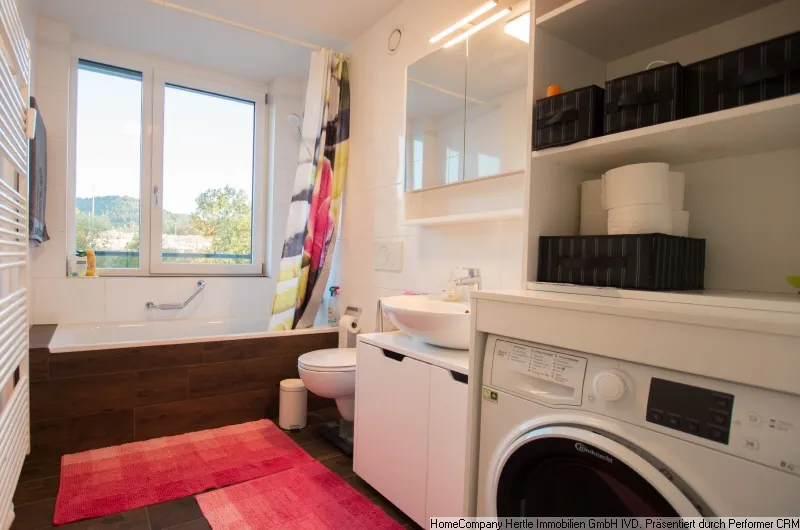 Bath, WC, illuminated Allibert cabinet, shelf, washer-dryer,