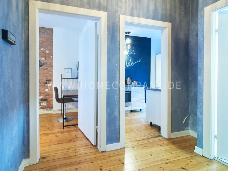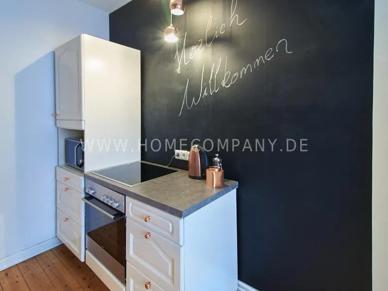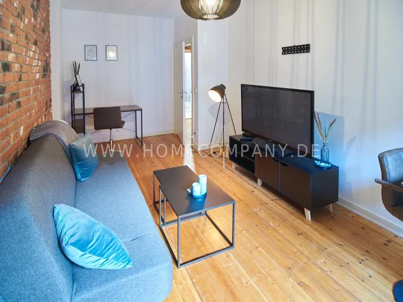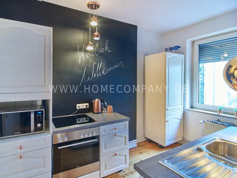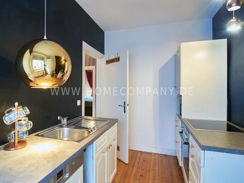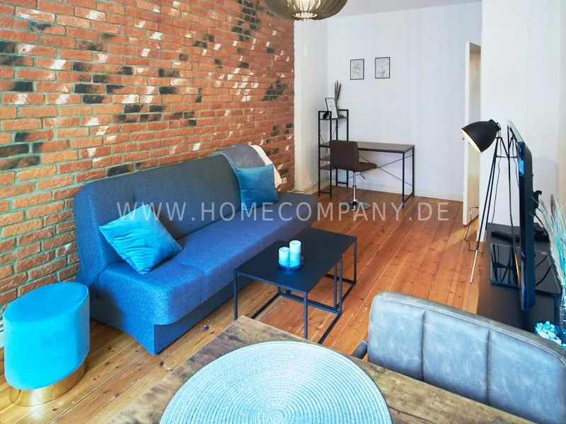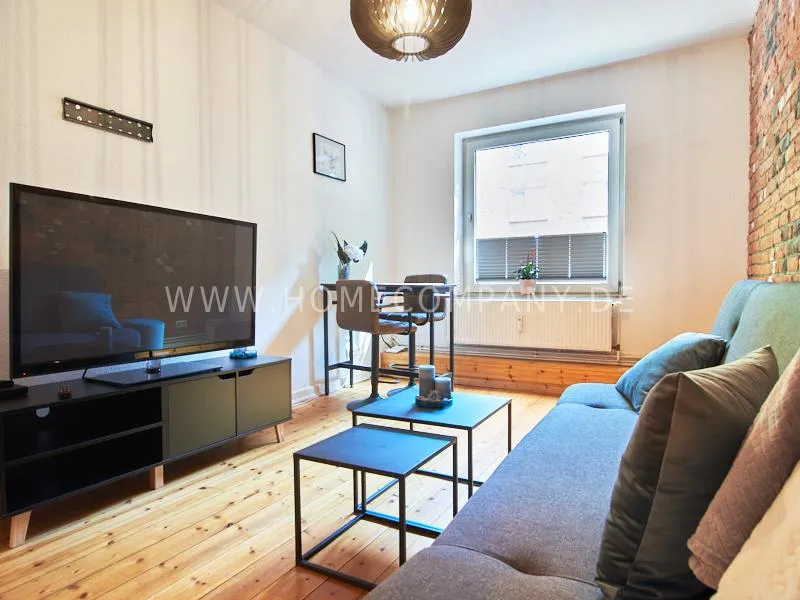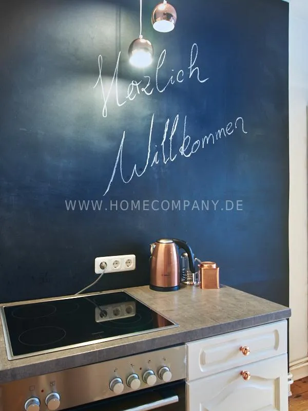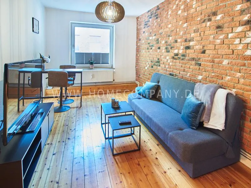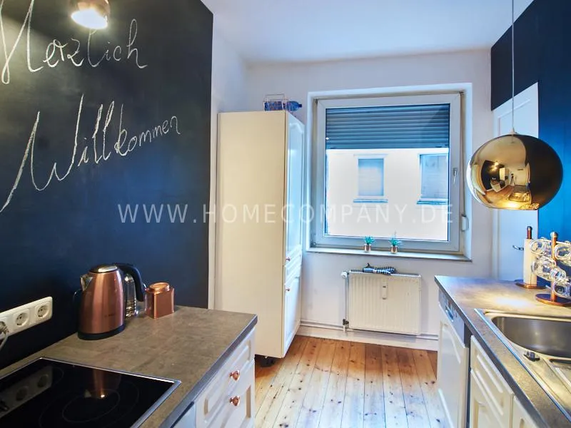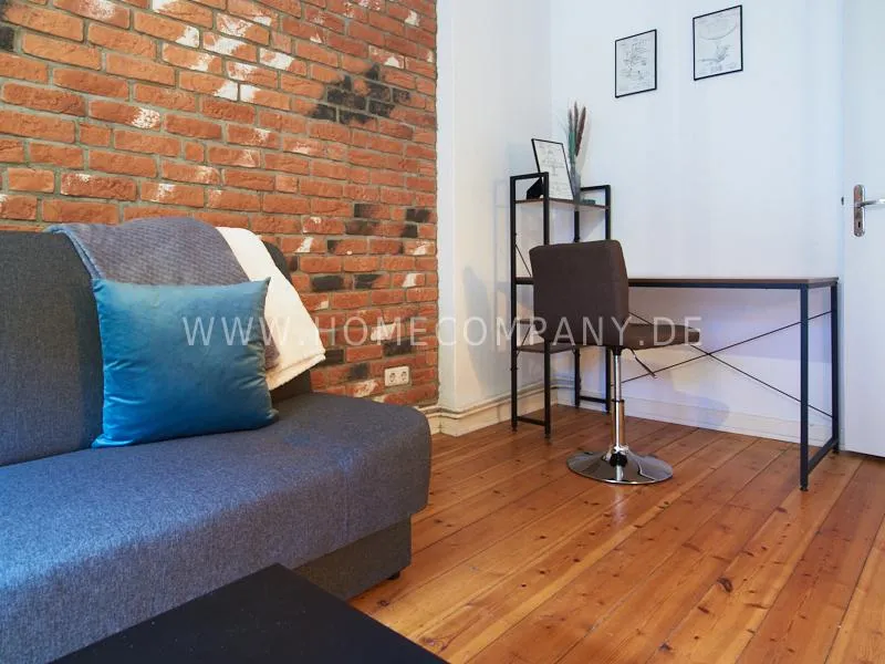 Retro-style apartment in the middle of the Schanzenviertel. Original pieces of furniture are combined with new elements. One wall is covered with real bricks in the living room. In addition to an antique sofa, a small dining area, TV and small side tables, there is a desk. The bedroom is furnished with a double bed. In the kitchen, anthracite-colored, panel-colored walls are combined with modern copper elements. All offers of the Schanzenviertel are located in the immediate vicinity. Trendy bars, cafes, restaurants and colorful little shops are right on the doorstep.