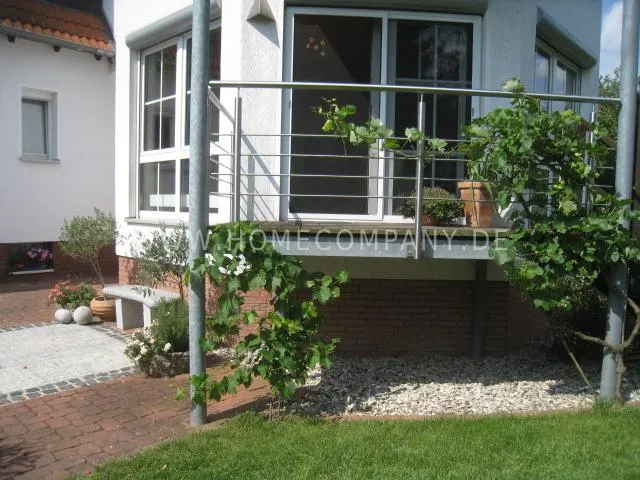 Live / cubicle with bed 140x200 cm (not yet on the photo), table with 4 chairs, shelve, wardrobe (not yet on photo), Shelve with SAT TV, access to the garden about tilled balcony with stair.