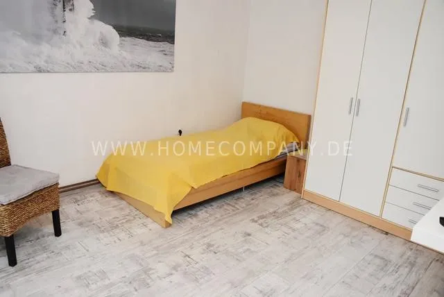 Room with bed 90x200cm, bedside table, wardrobe, flat screen TV, laminate,