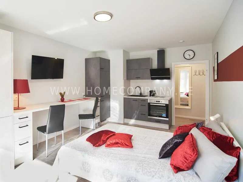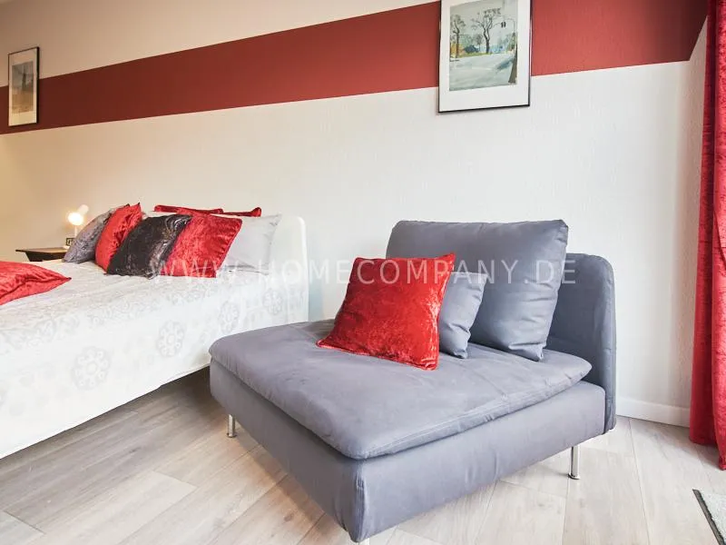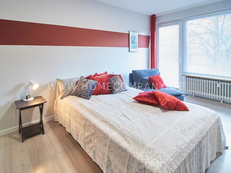 Behind the house is a large public car park. Very good infrastructure in the immediate area and good transport connections. The airport is reachable in 15 minutes.