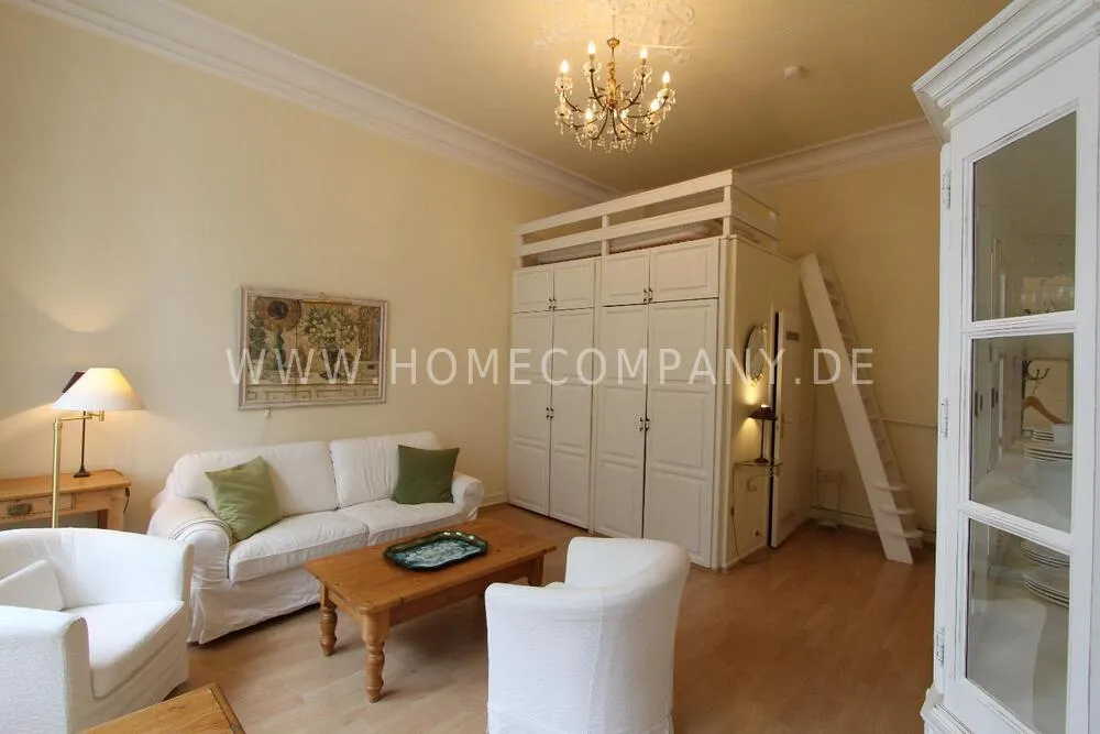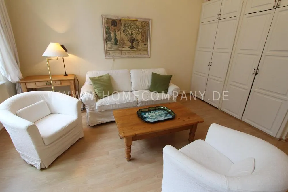 Well kept apartment in the elegant country style. The living room is divided into two areas. A cozy corner with a sofa bed and a 140cm berit living area with dining area. The apartment is located in a beautiful old house with high ceilings. A wonderful shower rounds out the handing of welcoming.