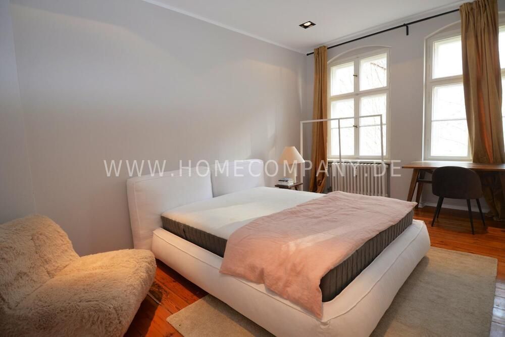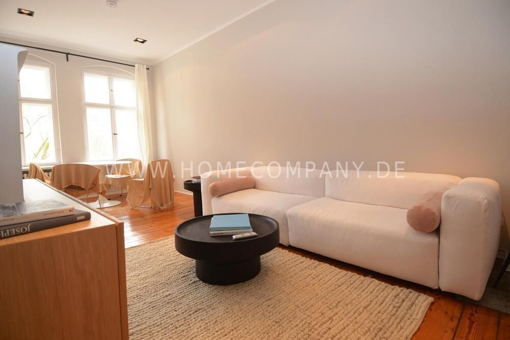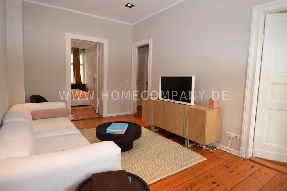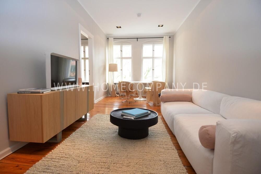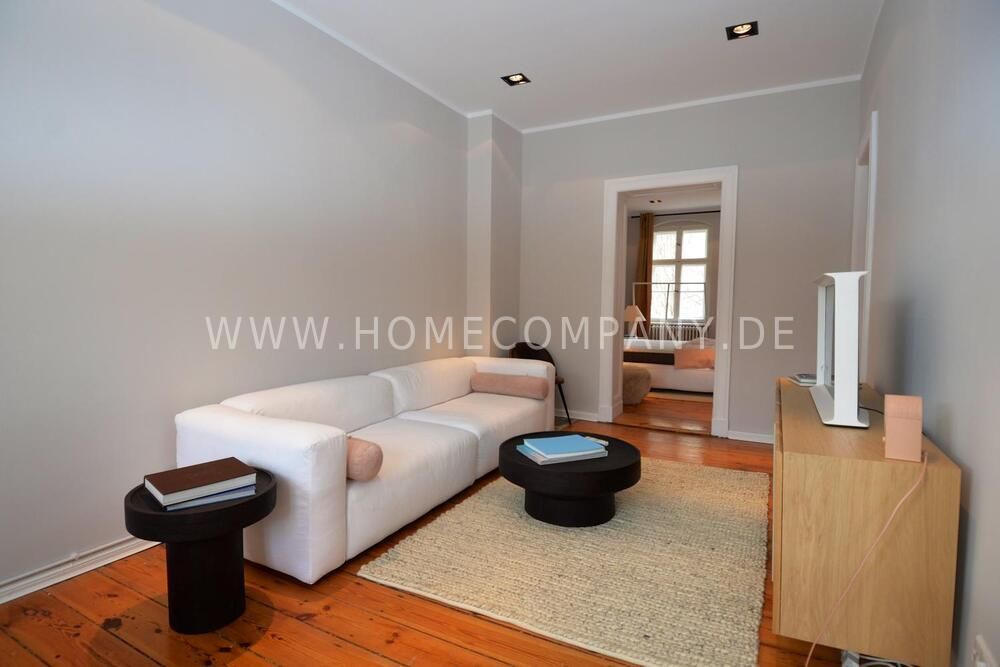 This stylish, fully furnished 3-room apartment with 100 m² is located in a prime position directly at Savignyplatz in Charlottenburg. The apartment impresses with its bright, high-quality interior and wooden flooring throughout. It offers two bedrooms with comfortable box-spring double beds, both with direct access to the spacious living room featuring a sofa and TV. The modern bathroom includes a large walk-in shower. The high-end kitchen is fully equipped with all necessary appliances. Internet is included. A gym is located directly opposite the building (membership approx. 40€ per month). A parking space is available upon request for 160€ per month
