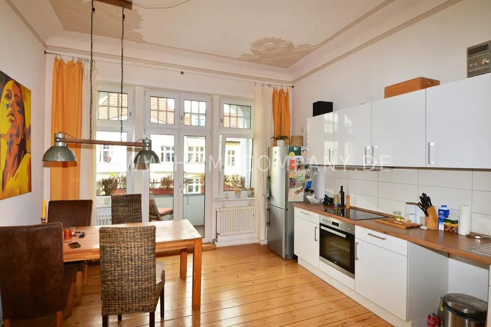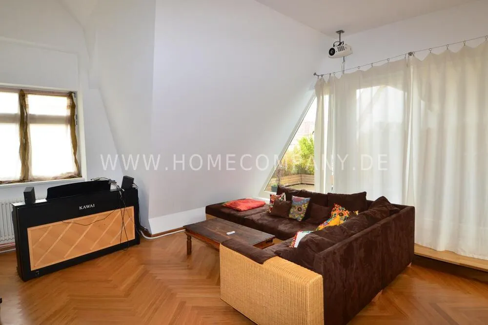 Fully furnished apartment on the 4th and 5th floor of an old building (no elevator) with a 16 sqm roof terrace and balcony.