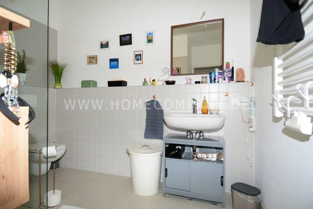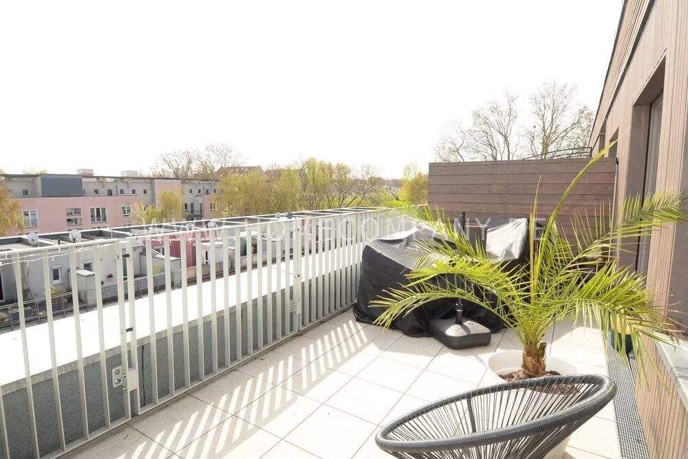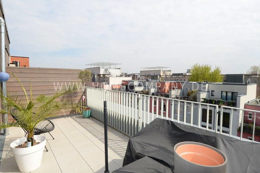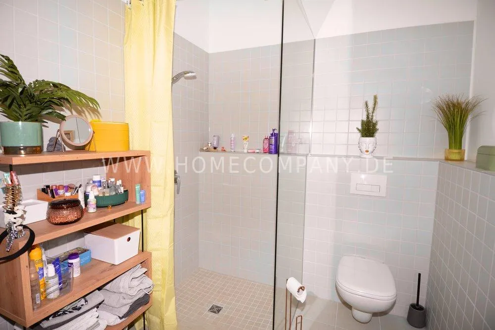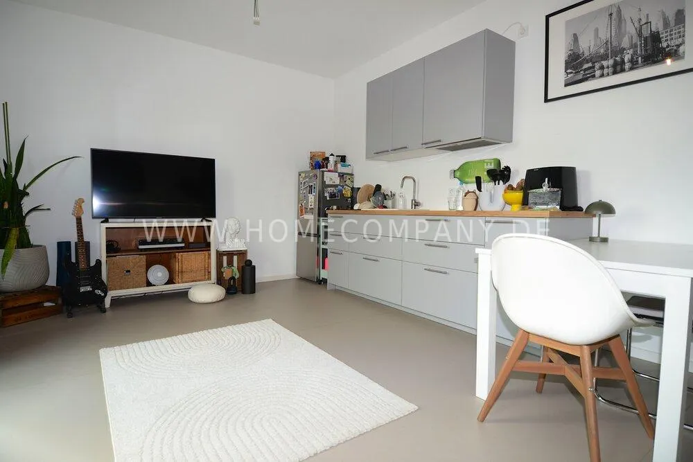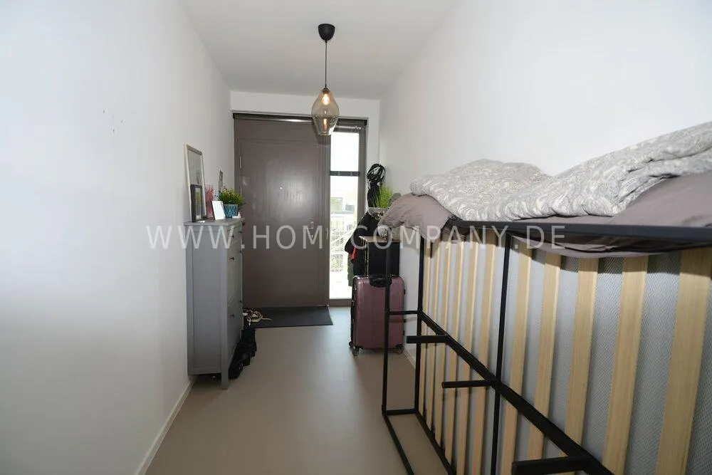 This stylishly furnished apartment offers upscale amenities and is located in the peaceful and highly desirable Stralau peninsula area of Friedrichshain-Kreuzberg. The modern living space features underfloor heating, a TV, and a recently purchased new sofa. The fully equipped kitchen includes a fridge-freezer combination, a single induction cooktop, and an air fryer. Although officially registered as a one-room apartment, it also offers a practical storage room with a washing machine, ideal for use as additional storage space and wardrobe area. A special highlight is the spacious rooftop terrace with brand-new outdoor furniture. All furnishings are less than two years old.