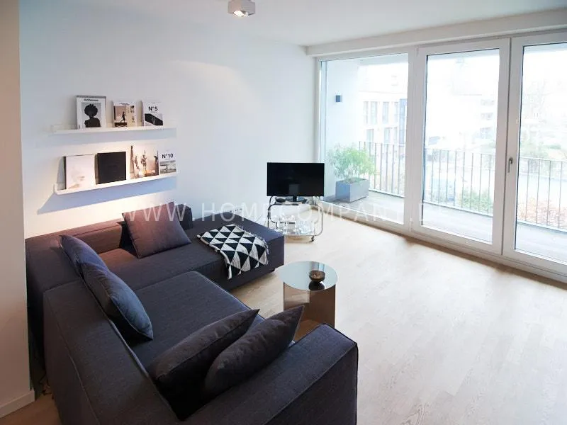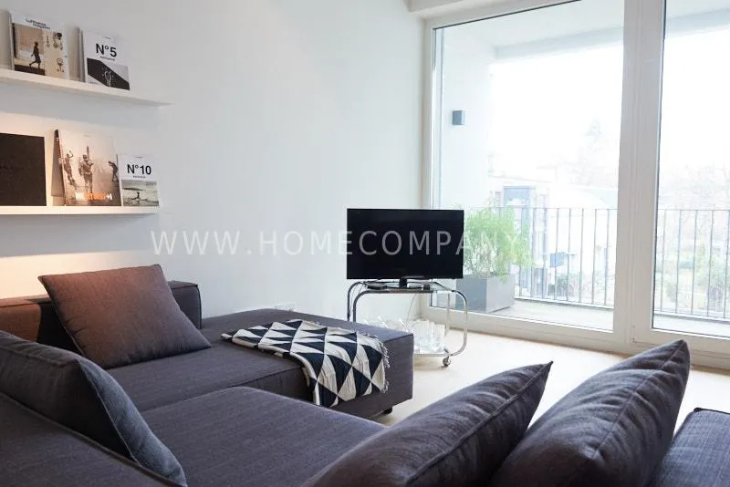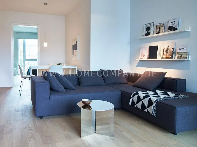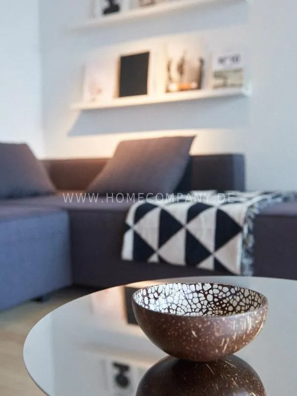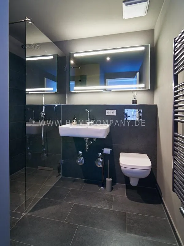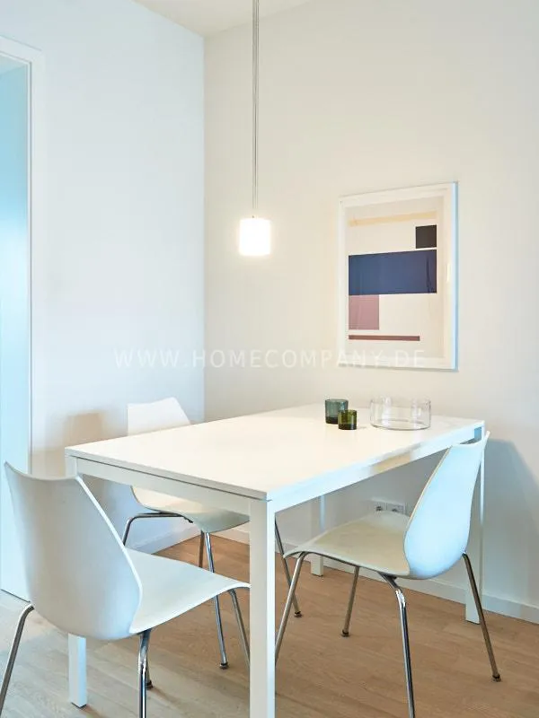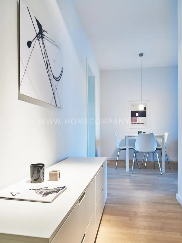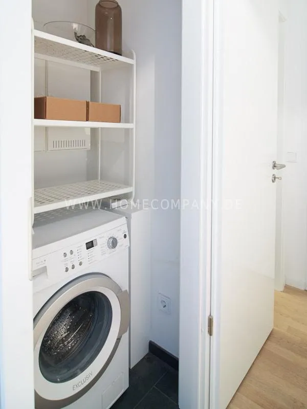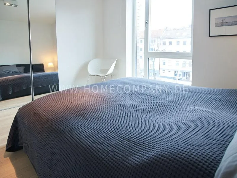 Stylish. Furnished and perfectly equipped apartment in a good location in a new building in Eimsbüttel. The open plan kitchen to the living room is decorated in modern brown and gray tones. In the living room, the large corner sofa invites you to relax after work. A dining table with four chairs is available Through the floor-to-ceiling windows, the living room is visually extended to the area of the adjacent large balcony. On summer evenings, this place invites you to barbecue with the electric grill. The bedroom is equipped with a 1.60 wide double bed and plenty of closet space.