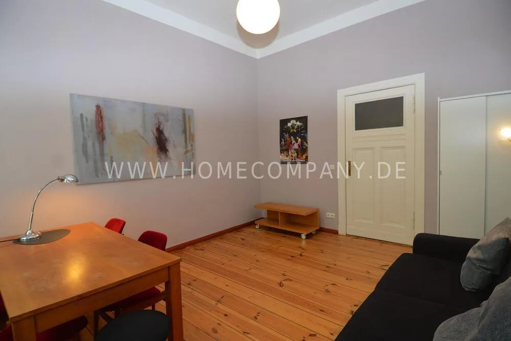 This charming and fully furnished 2-room apartment is located on the 4th floor of a classic Berlin building in the sought-after neighborhood of Schöneberg. Originally a 3-room apartment, one room remains locked, offering a spacious layout with a bedroom and living area - ideal for singles or couples.