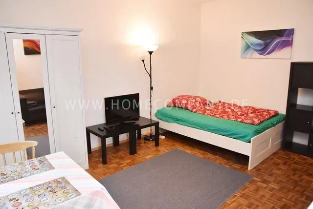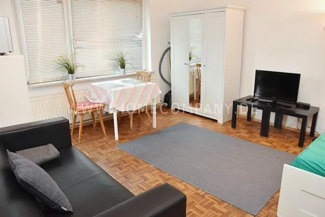 Living/bedroom with bed 140x200 cm, wardrobe, couch, table, to 2 chairs, TV, Venetian blind, parquet, multi-functional stove, access to balcony.