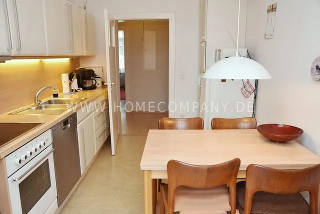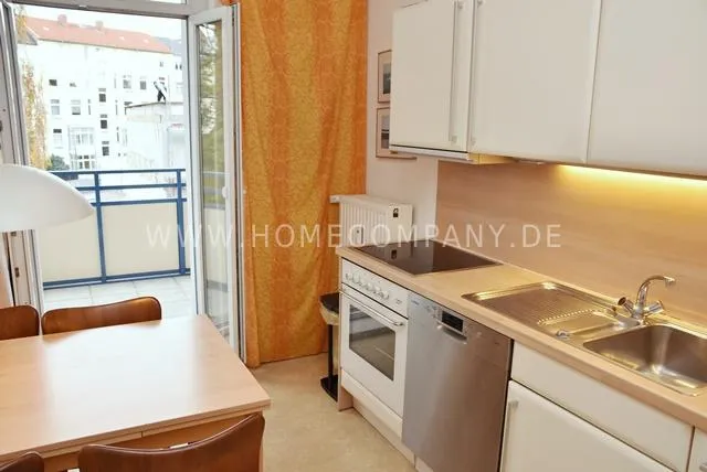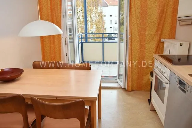 Fitted kitchen with dish washer, dining table, big balcony (please do only smoke here).