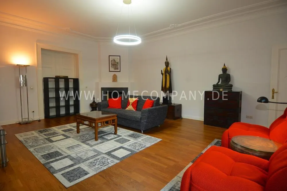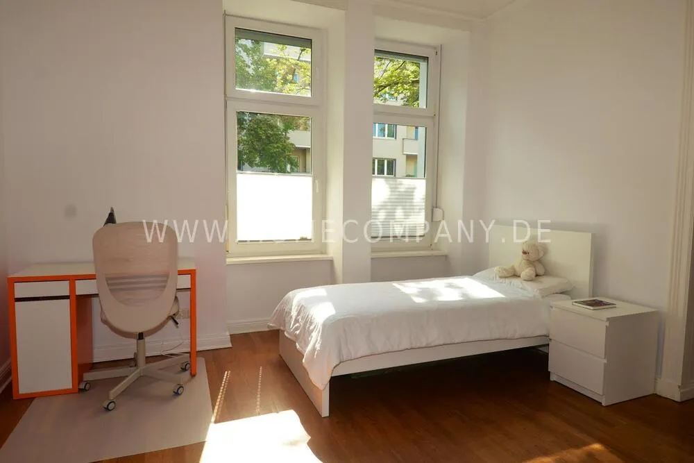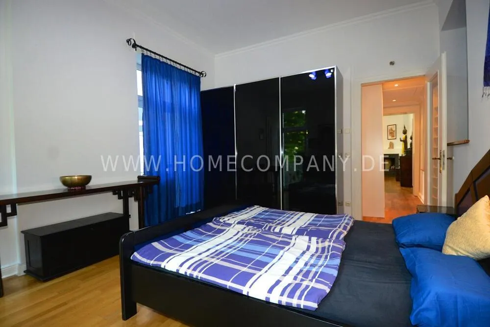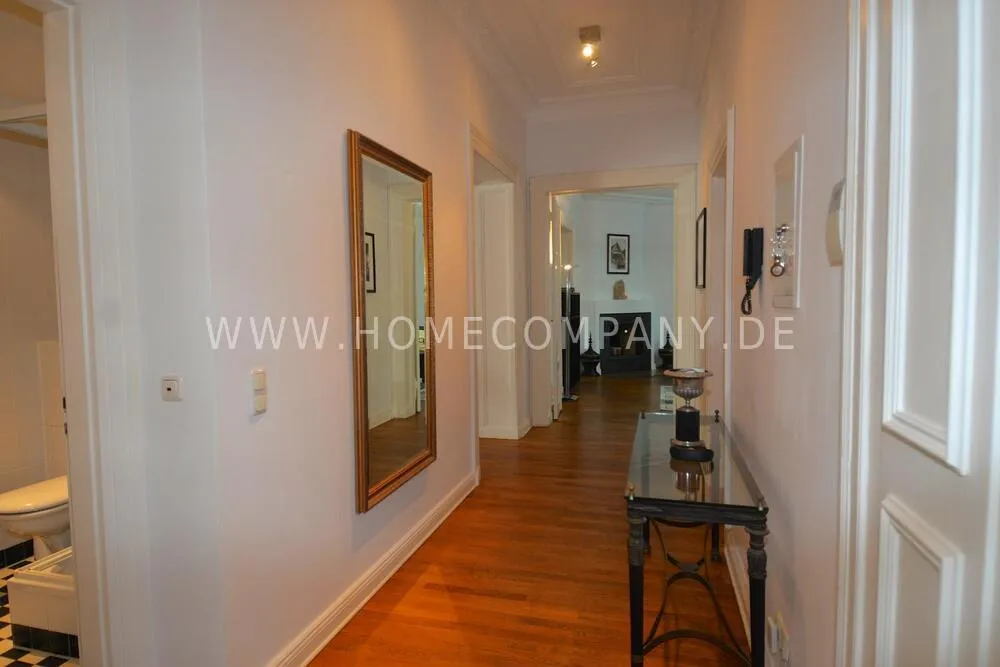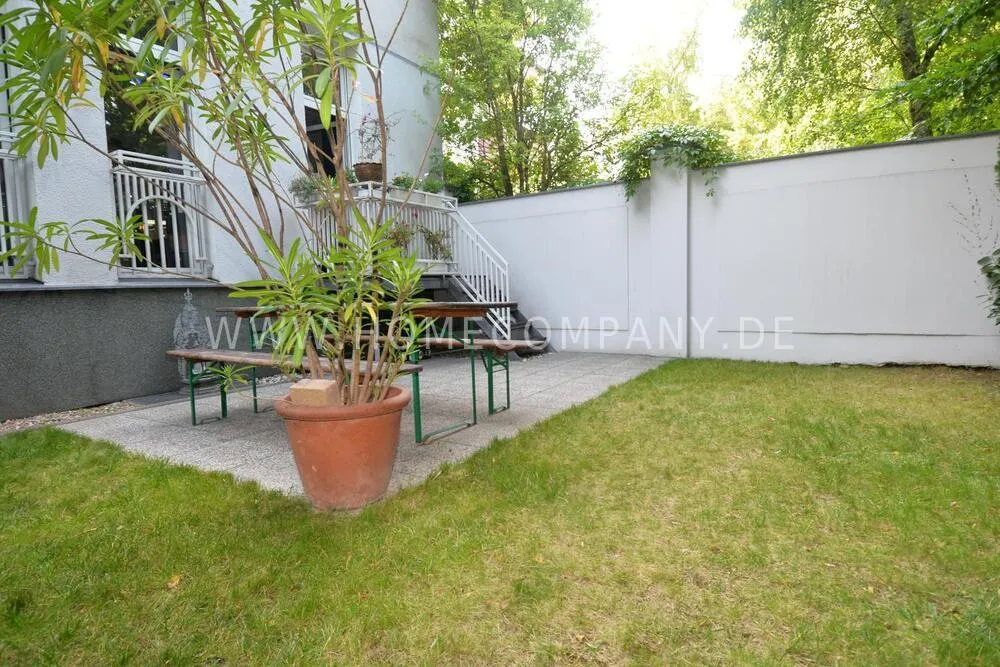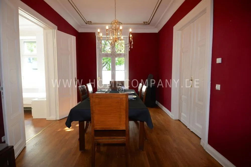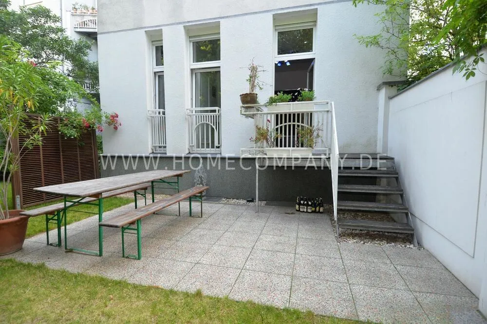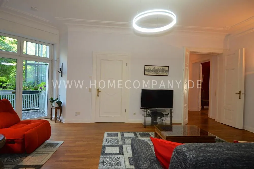 Very high-quality 4-room apartment in Berlin Charlottenburg with its own garden and terrace. The apartment has a detached house feel, occupying the entire floor of the building. An additional room is not rented and remains locked.