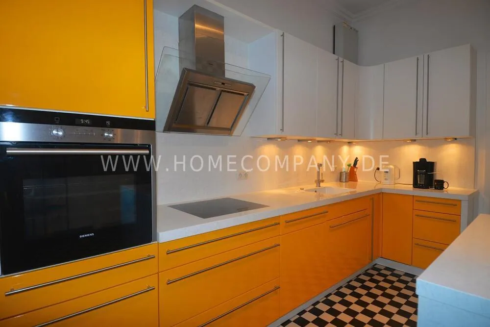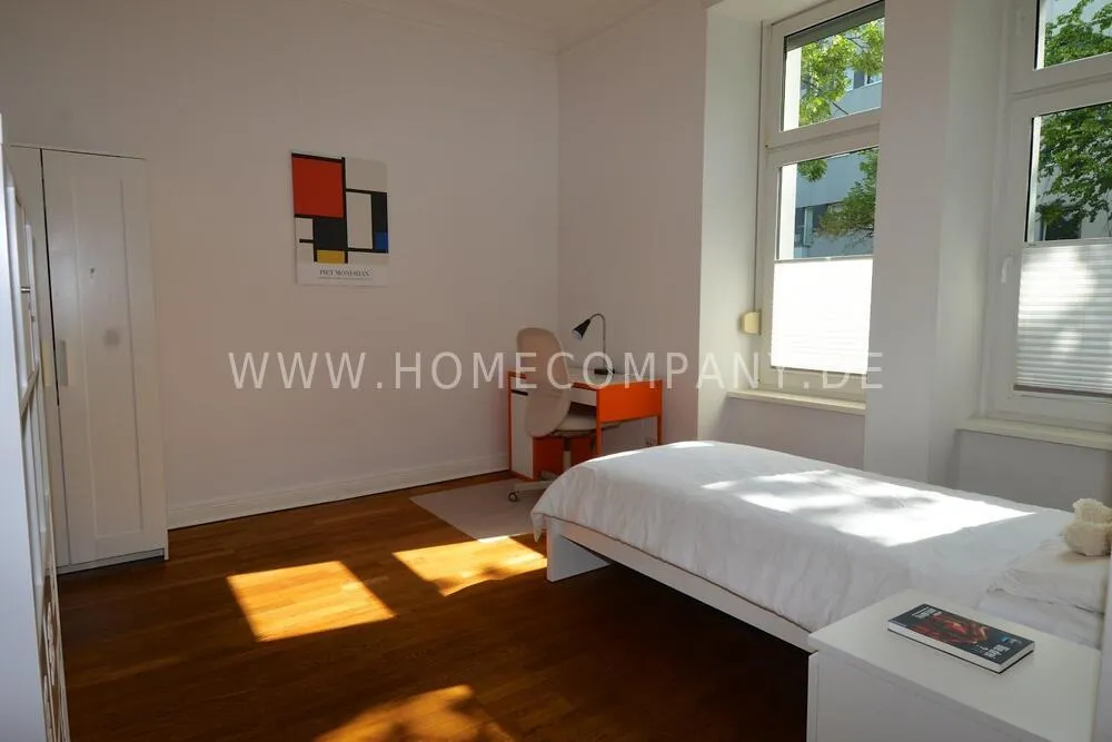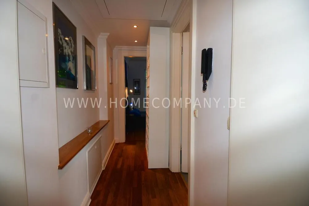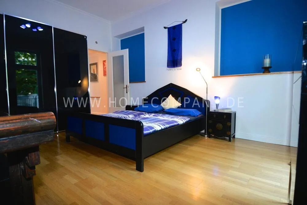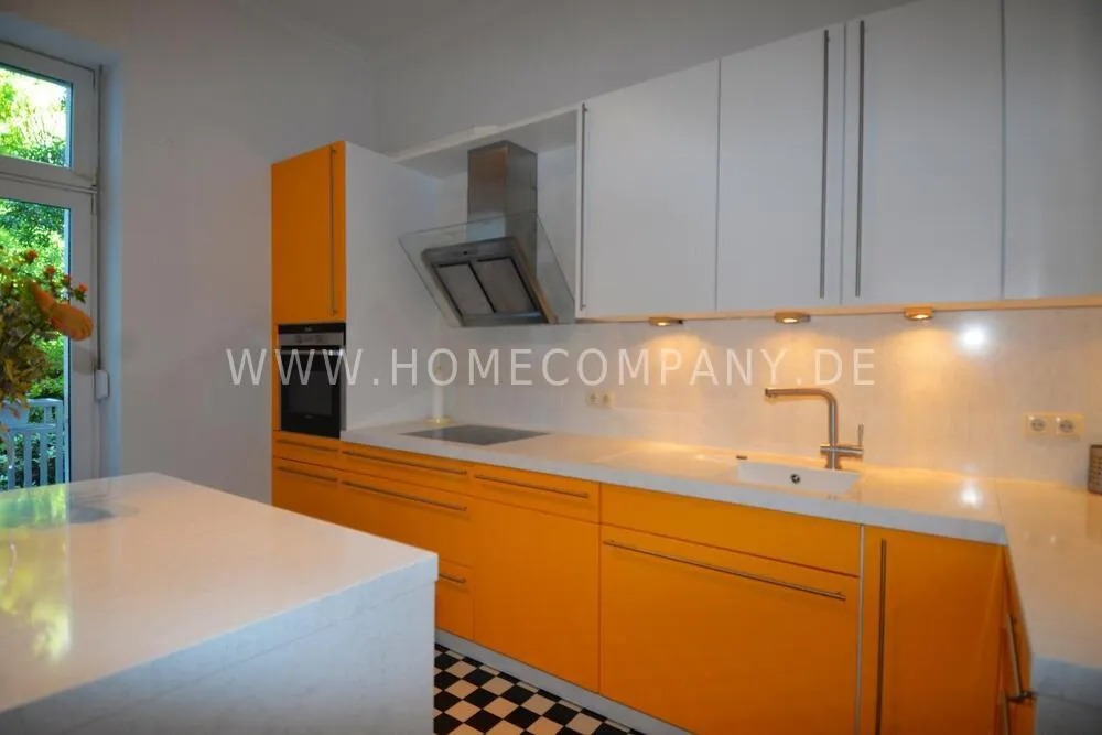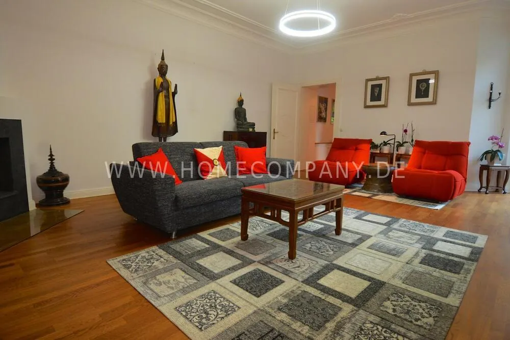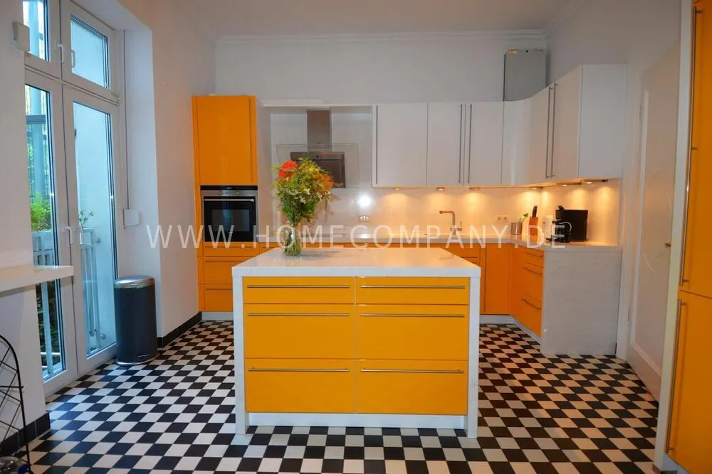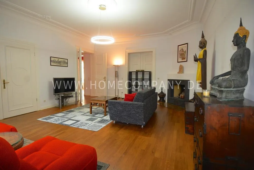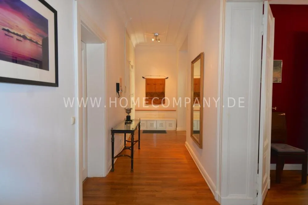 Very high-quality 4-room apartment in Berlin Charlottenburg with its own garden and terrace. The apartment has a detached house feel, occupying the entire floor of the building. An additional room is not rented and remains locked.