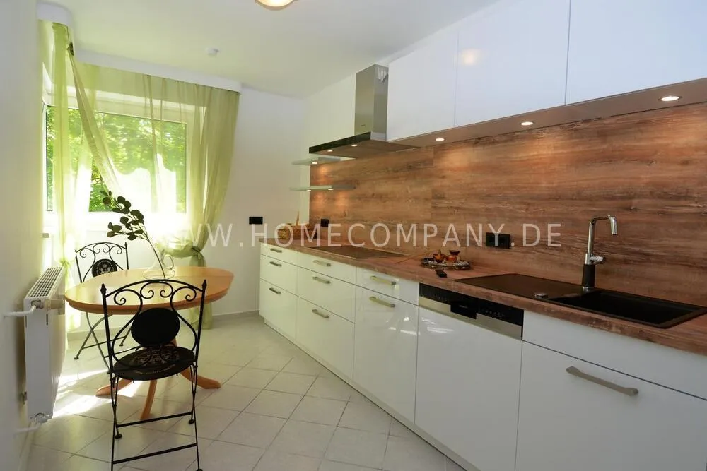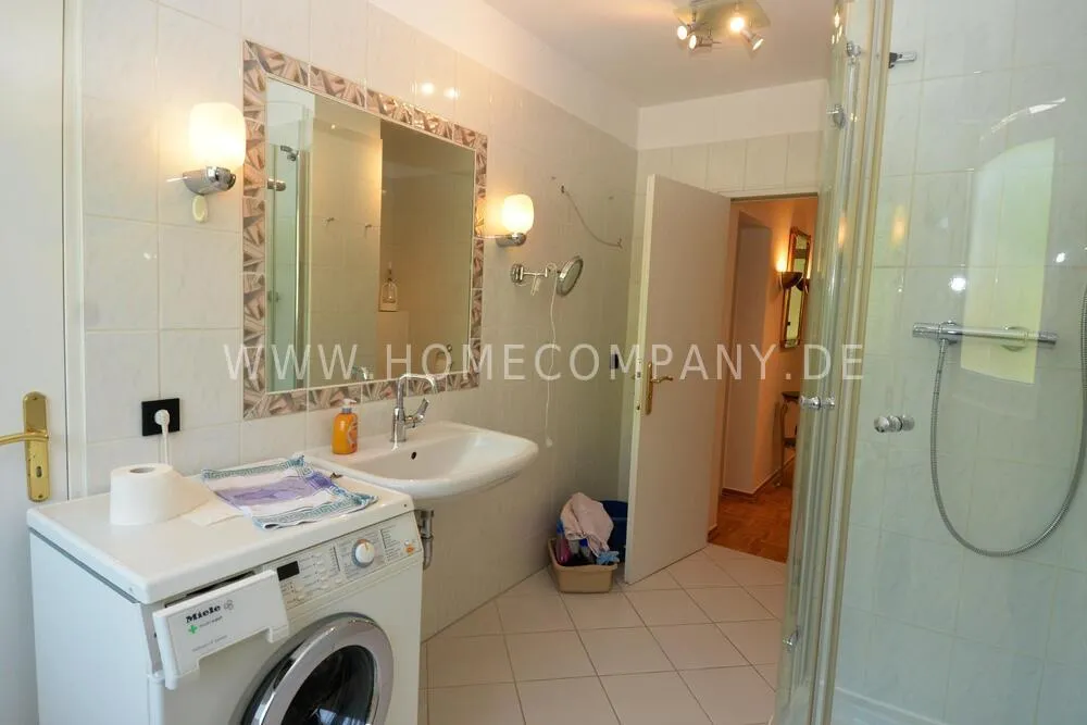 Newly renovated 2-room apartment in Berlin Westend. Very quiet and bright apartment with a large living room with a dining area and sofa. The sofa converts into a sofa bed. Access to the very large south-facing balcony is provided from the living room.