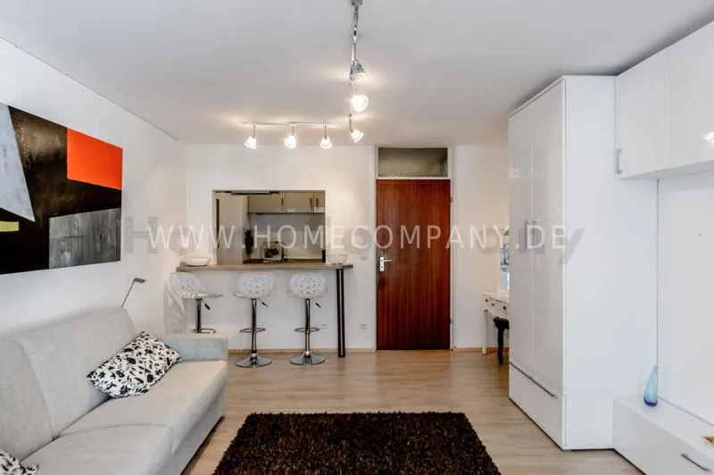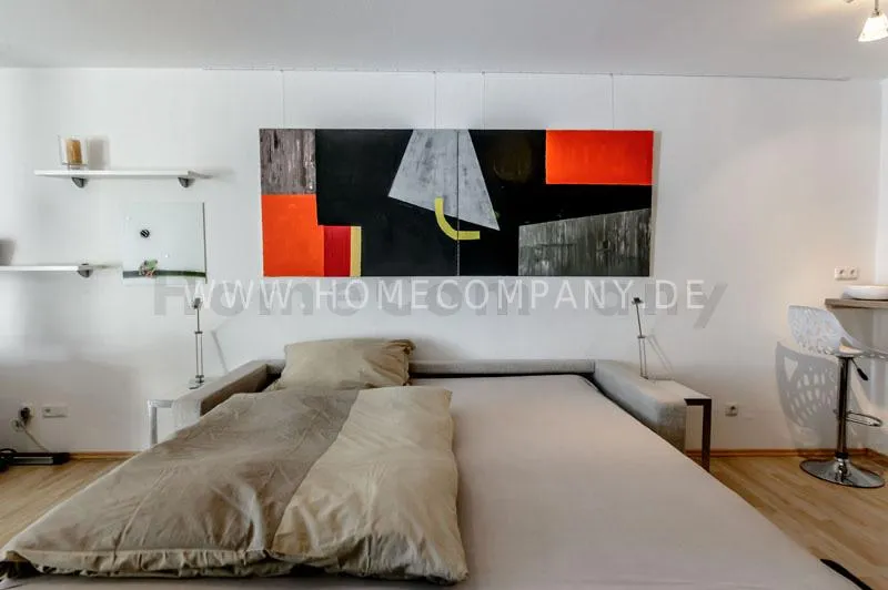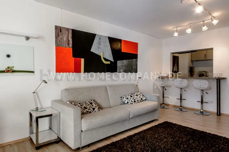 Very modern and bright apartment in a quiet side street in the district of Neuhausen. Large living room with high quality sofa bed and small workplace. Modern kitchen with open hatch to the living room. The kitchen offers everything for daily use, also dishwasher available. Internet is included in the rent. Modern bathroom with bathtub. Sat-TV available. Laundry room available. Internet included in the rent. Parking on request €90,00