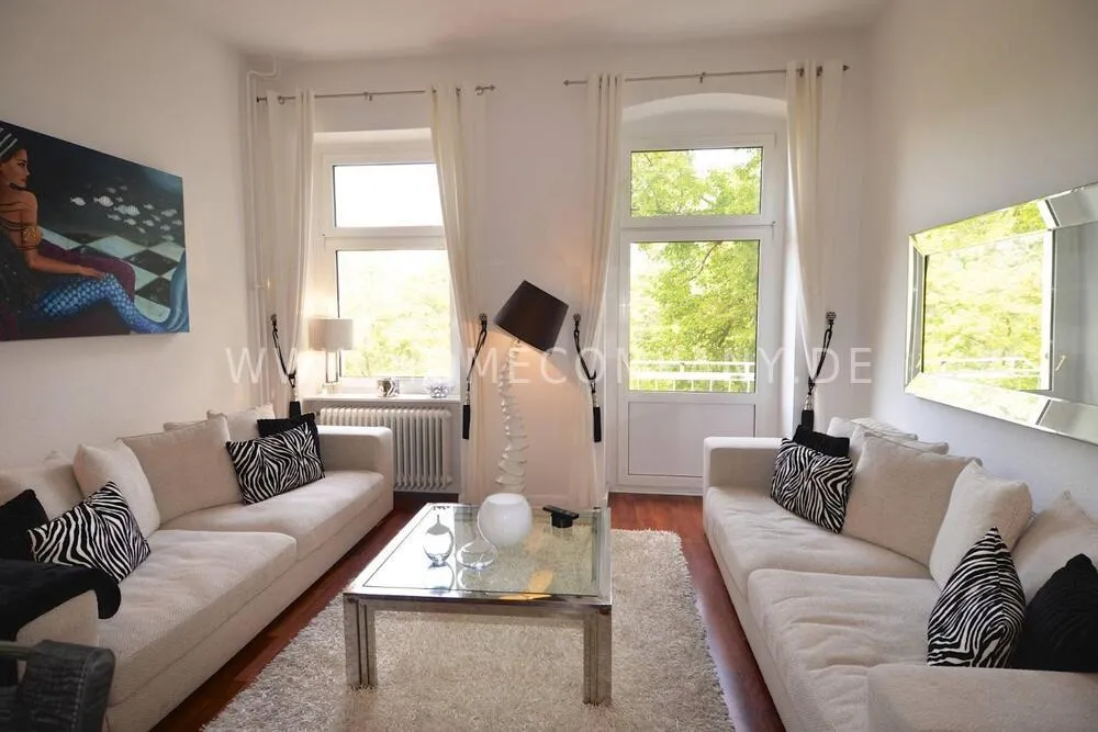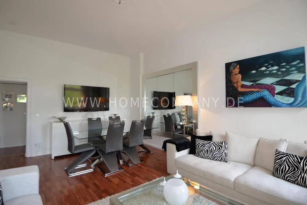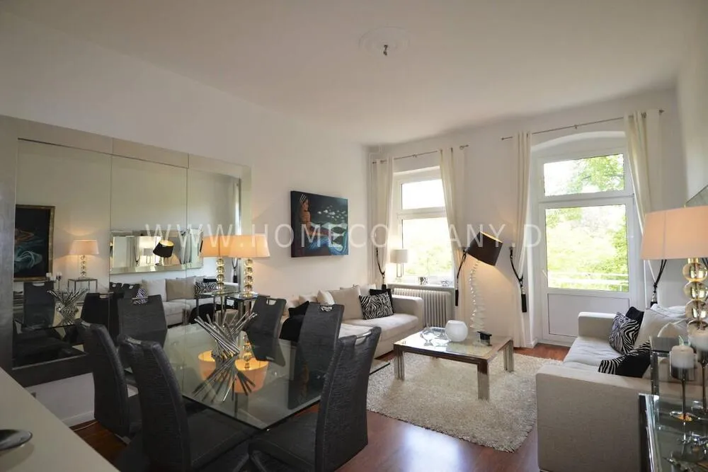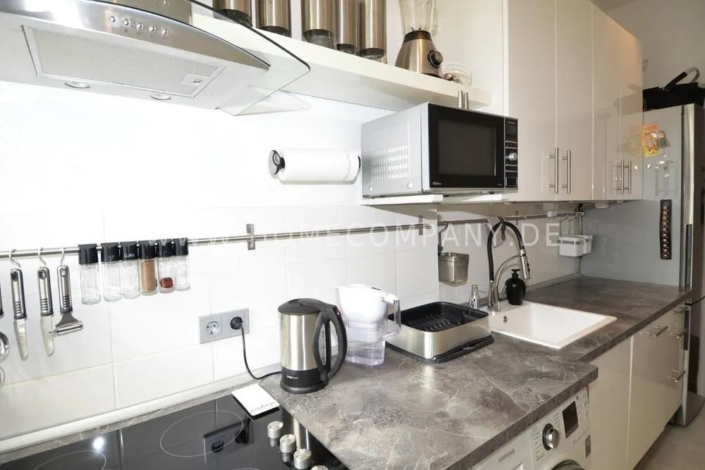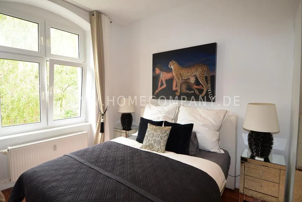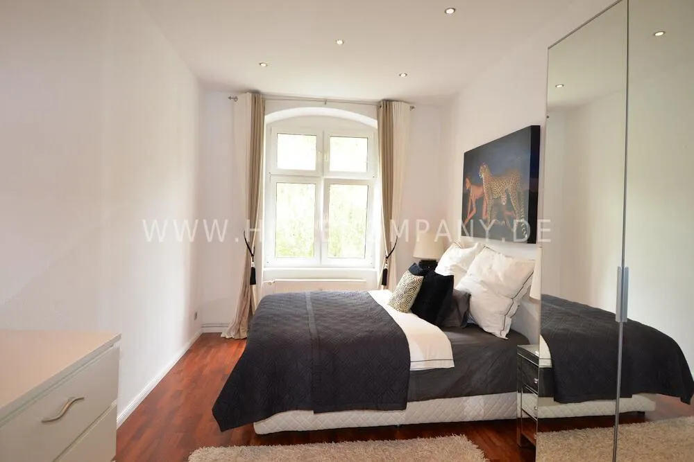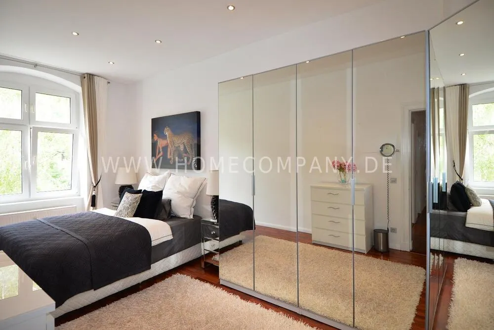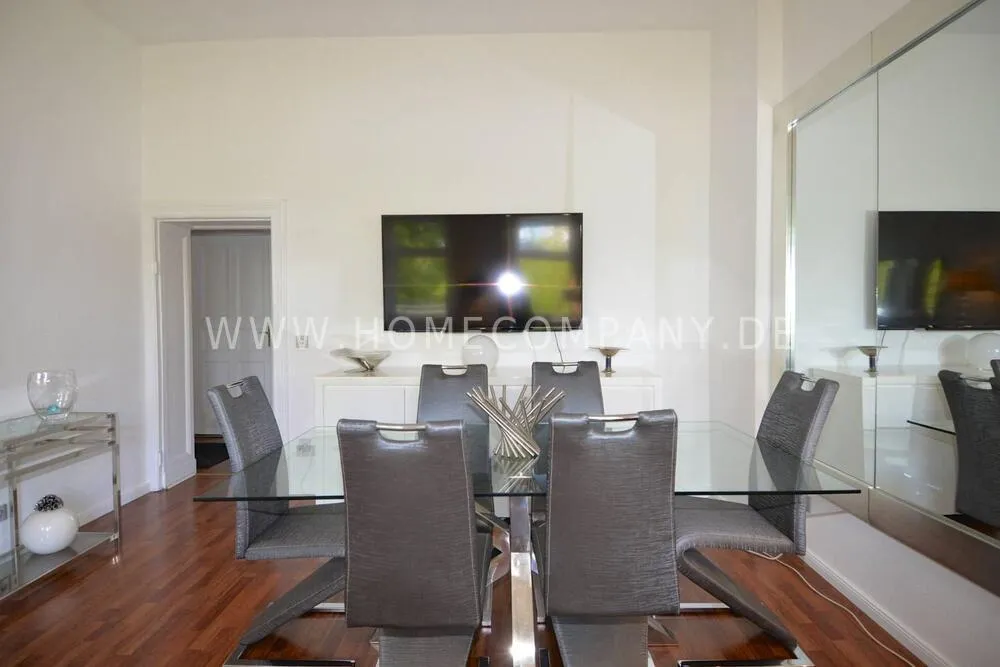 Very tasteful and high quality furnished 3 room apartment in Berlin Hallensee. The very quiet apartment has a very nice living room with dining area, the fitted kitchen is fully equipped. The bedroom has a double bed (box spring) and a large closet with plenty of storage space. The tiled bathroom has a shower.