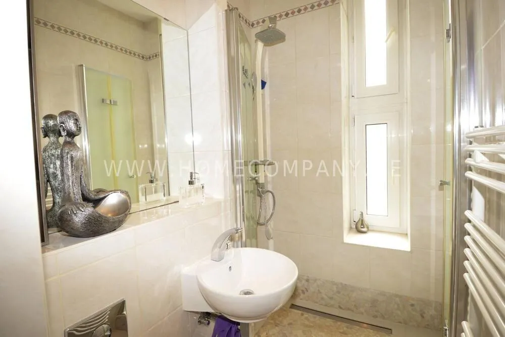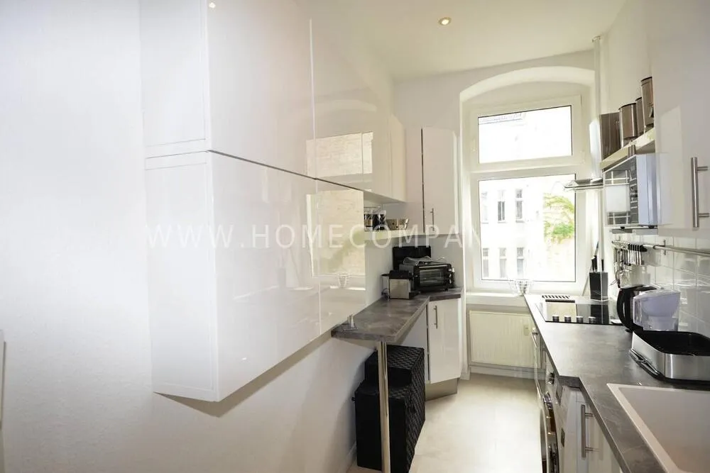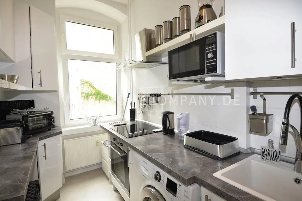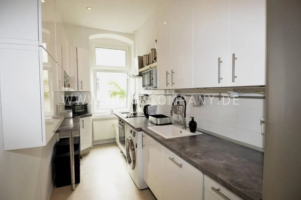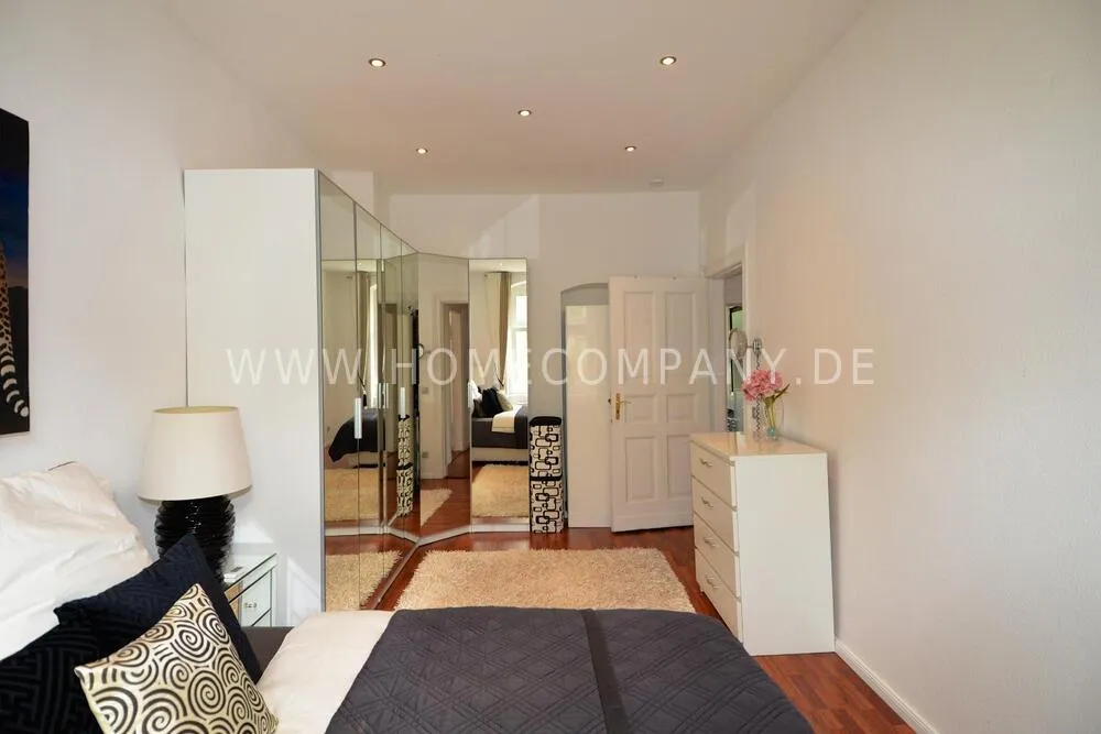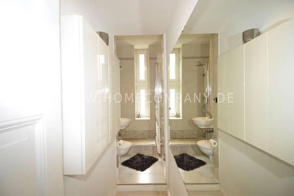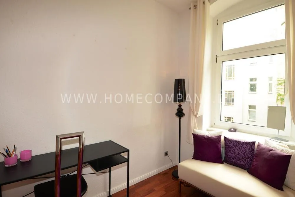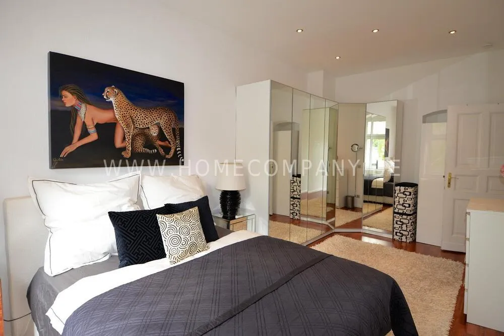 Very tasteful and high quality furnished 3 room apartment in Berlin Hallensee. The very quiet apartment has a very nice living room with dining area, the fitted kitchen is fully equipped. The bedroom has a double bed (box spring) and a large closet with plenty of storage space. The tiled bathroom has a shower.