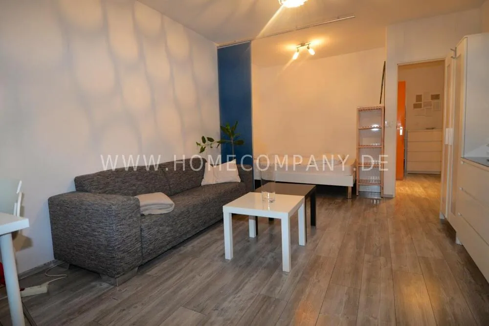 The apartment was partially renovated in 2024, sleeping area can be separated by sliding curtains. Living/bedroom with sufficient cupboards, sofa and desk.