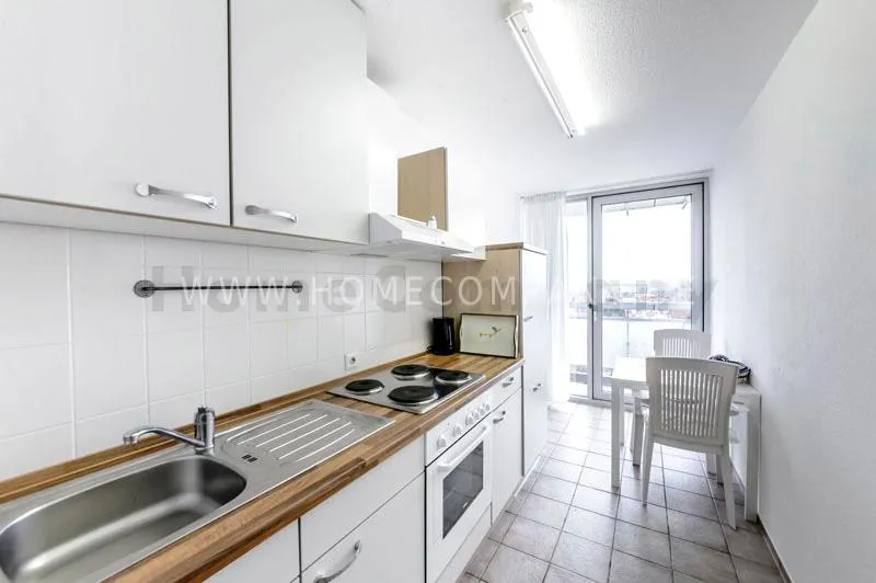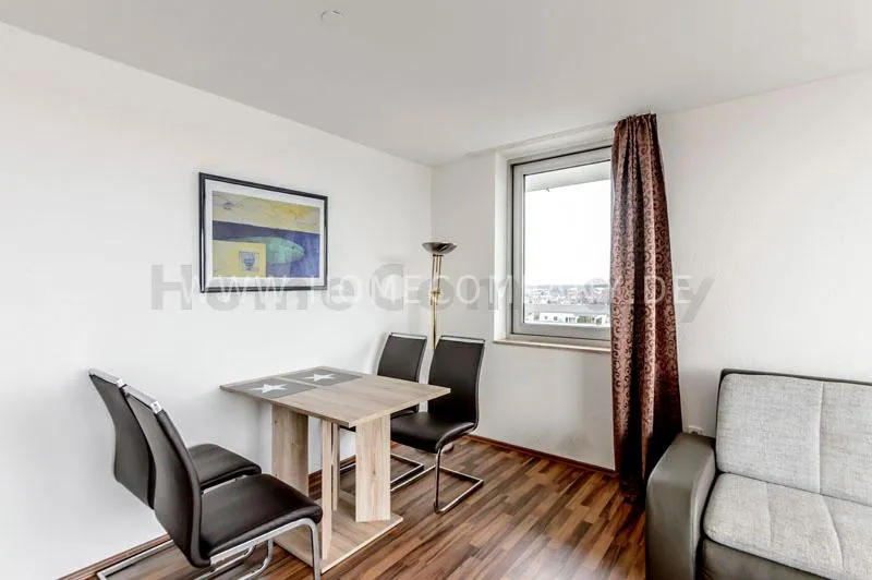 Very nice, bright and sunny 2-room flat in Unterschleissheim. With south-east facing balcony and wonderful views towards Munich and the Allianz Arena, the flat is on the 8th floor with lift. On a clear day you can see the Alps. The flat is fully equipped and offers everything for daily use. The living room has a sofa bed and a dining area. The bedroom is furnished with double bed and wardrobe. Bright tiled bathroom with tub. Laminate floor and tiles are laid. In the immediate vicinity (3 minutes walking distance) is the city centre with many shops and nice restaurants. Also the S-Bahn (suburban train) is only a 3-minute walk away.