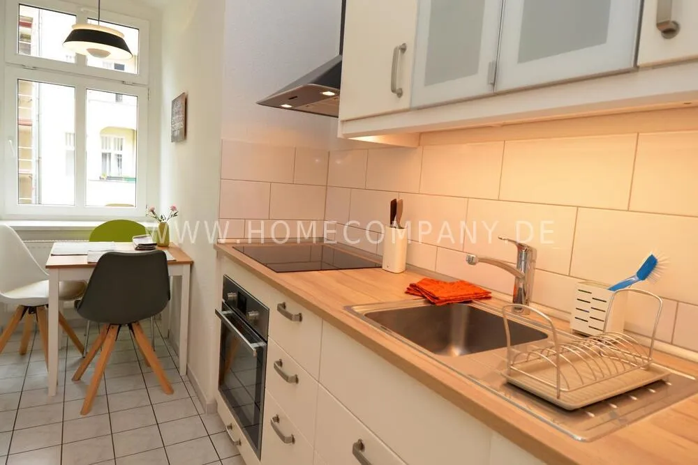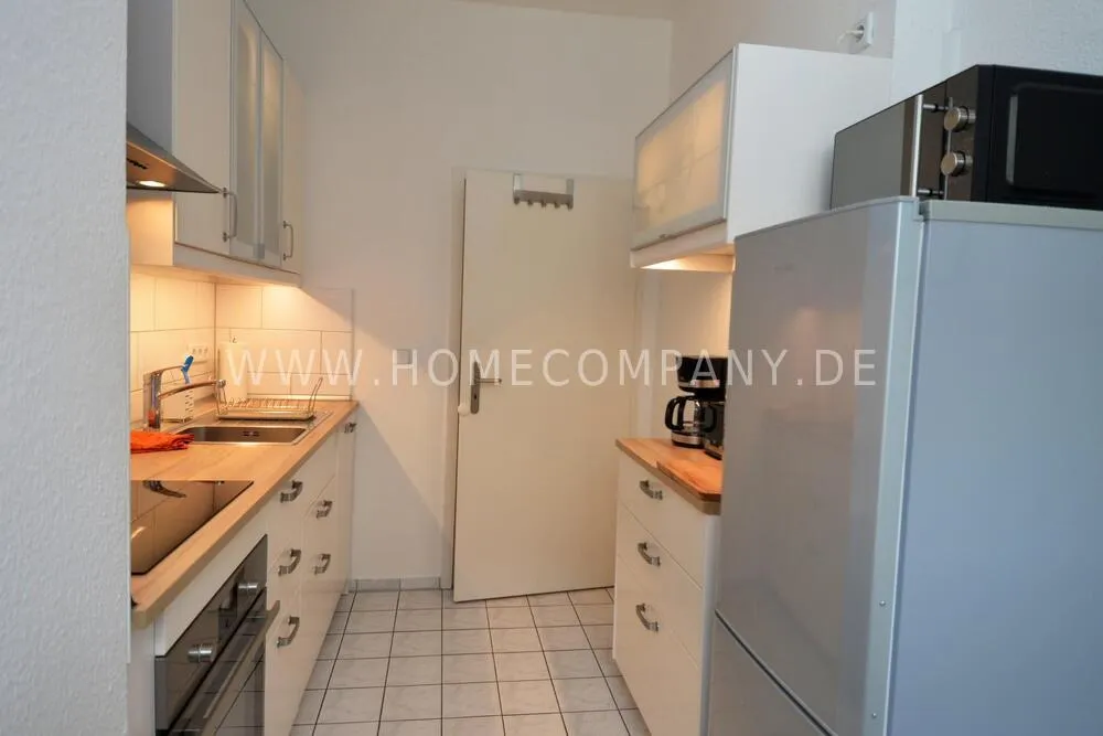 In the "balcony room" there is a pull-out sofa bed with slatted frame (140cmx200cm) and mattress cover, so that it is possible to sleep restfully on it for a longer period of time. A TV from Panasonic is available. In the second room there is a sofa as well as an oak desk and an oak bed with a high-quality cold foam mattress (140cmX200cm).