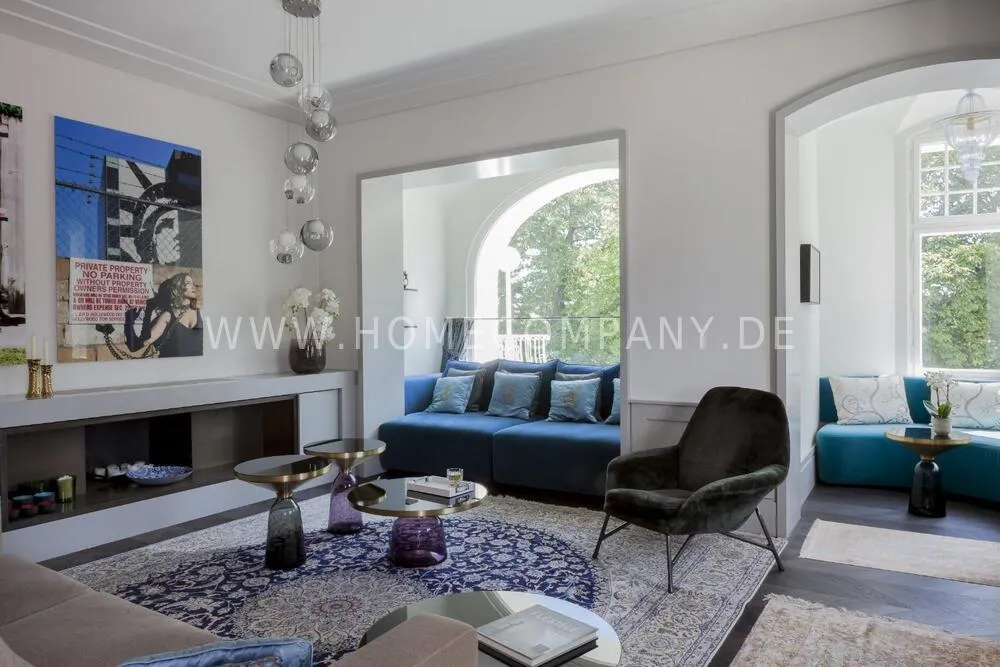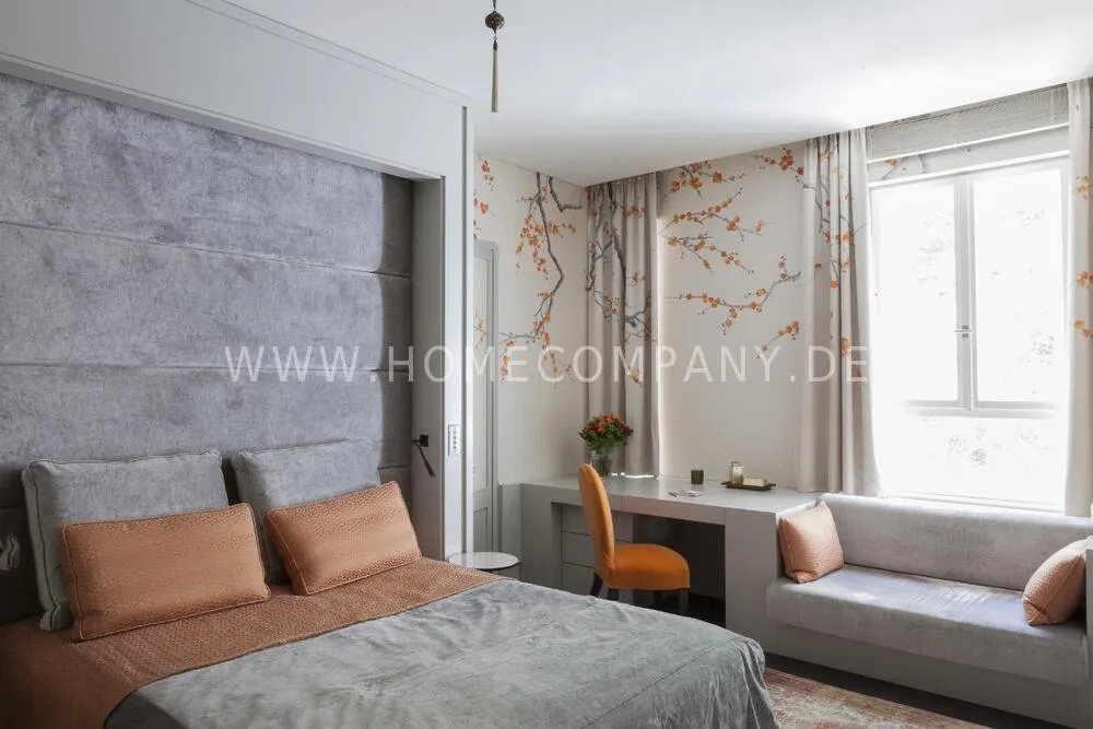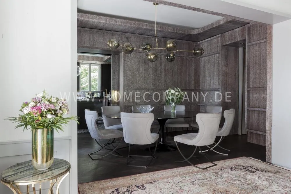 Exclusive Presidential Suite in Berlin Westend: 262 sqm of pure luxury on the first floor of a Jugendstil villa. Featuring 5 spacious rooms, a fully equipped kitchen, an elegant dining area, and a master bedroom with a private balcony. The terrace offers breathtaking views of the pool and garden landscape. The kitchen impresses with Gaggenau appliances and a cooking island. Ensuite guest room, walk-in closet, fireplace, and complimentary access to the extensive garden area with parking included. All-inclusive rent for an unparalleled living experience.