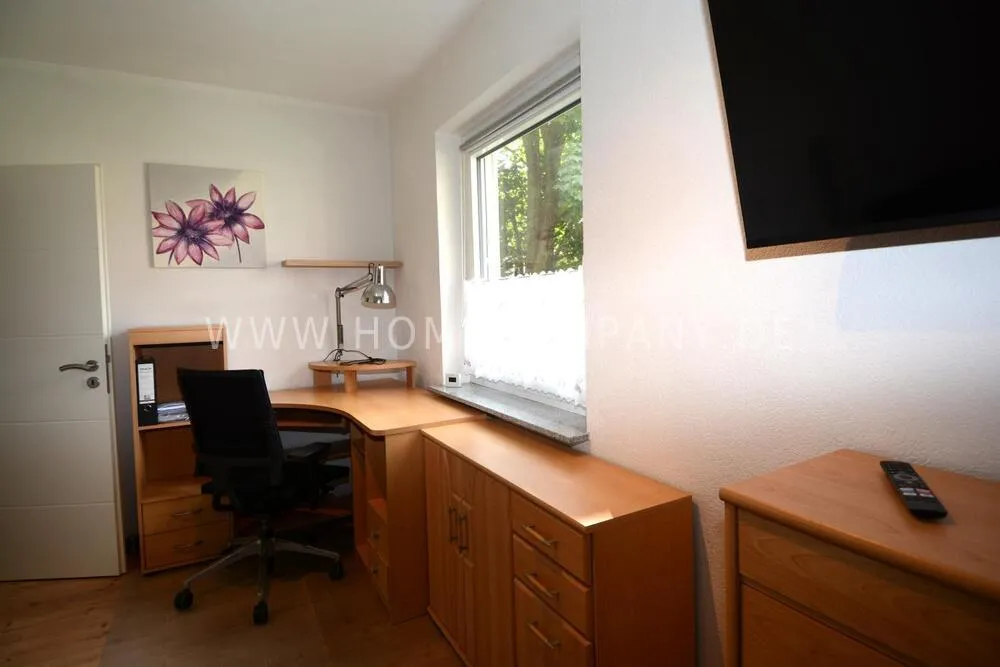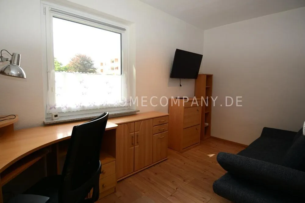 Very nice 3 room apartment in Kiel Suchsdorf. The apartment is fully equipped with washing machine, dishwasher, extra freezer. Glass fiber internet. In the living room there is a launch area and a large dining table with 4 chairs, from here you can also get to the large balcony. The bedroom has a large double bed (1.80) and 2 large cupboards. The guests/study has a sofa bed and a desk. The engraving kitchen is completely equipped with dishes, pots, etc. The bathroom has a walk -in shower. There is also a chamber in which the additional freezer is located.