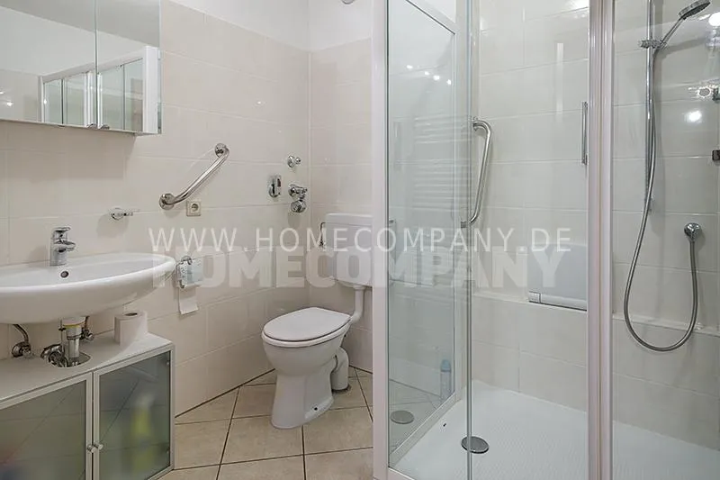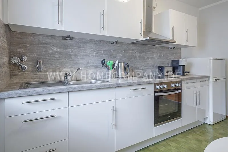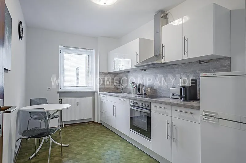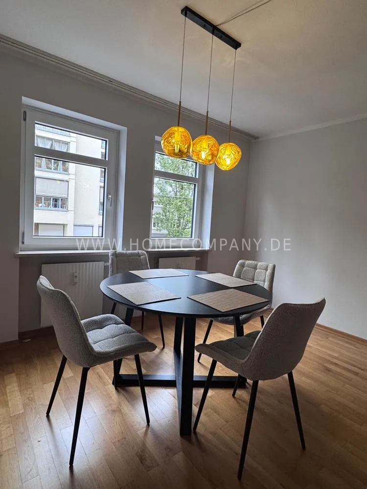 Well-kept furnished 3-room-apartment with spacious balcony in excellent location in Haidhausen. Wiener Platz nearby. 2nd floor with lift. The living-room offers a dining area for at least 6 persons, a high-quality sofa and a commode. Separate kitchen with window and seats, equipped with everything for daily use, e.g. a dish-washer. There are two spacious bed-rooms: both are furnished with a boxspring-bed and a wardrobe each. The modern and timelessly tiled bath-room offers a big glass-shower. Own washing-machine available. Additional storage room in the entrance area.